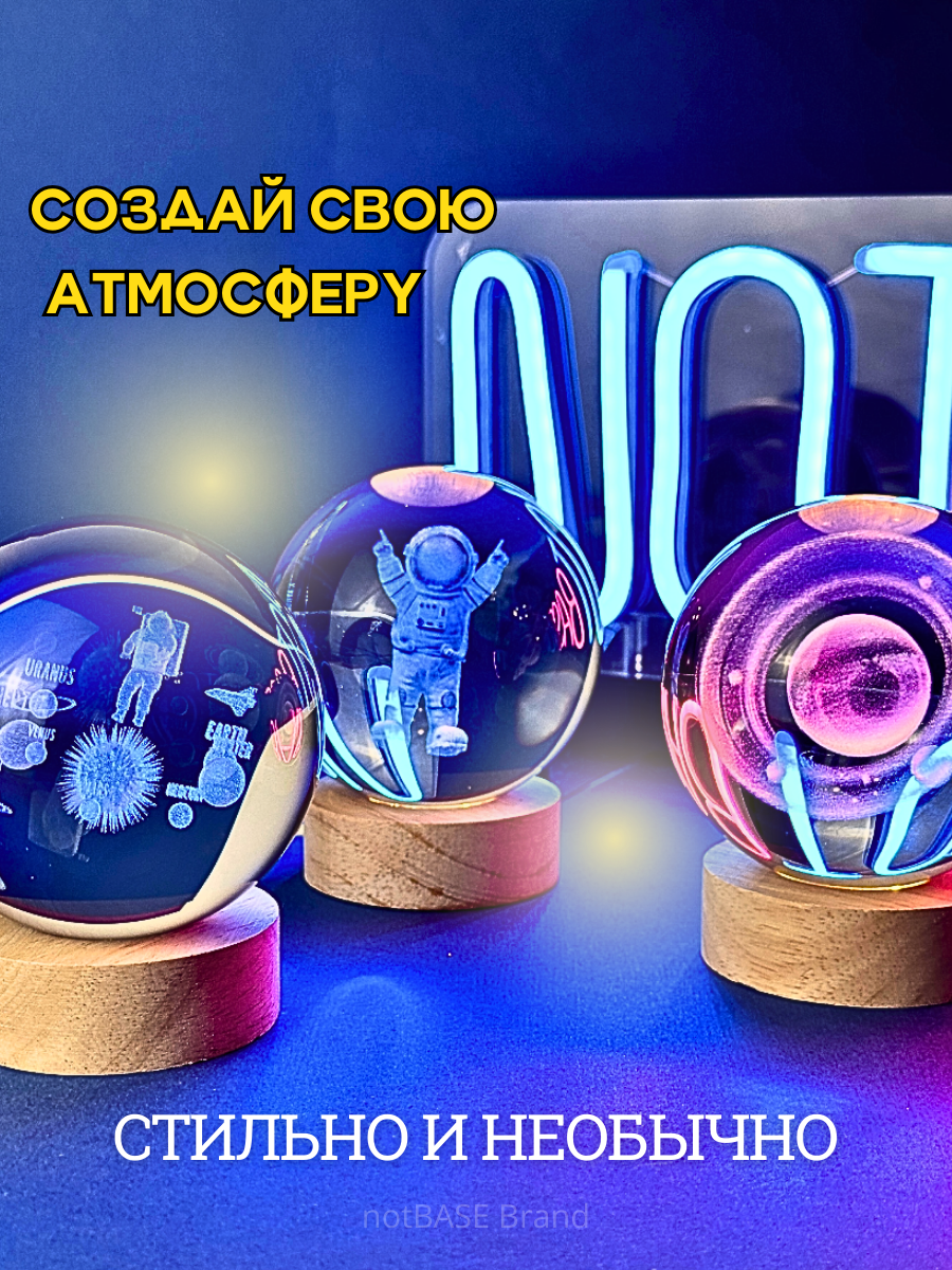 10 цен на Светильник - ночник детский 3D "Космонавт и Луна" стеклянный шар 8см