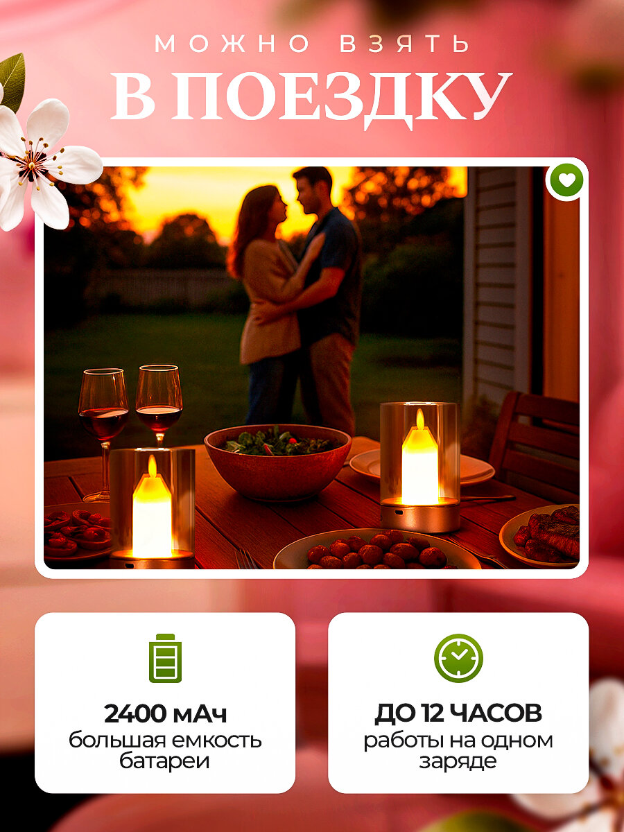 Светодиодная свеча, сенсорное управление, аккумулятор 2400 мА·ч информация: