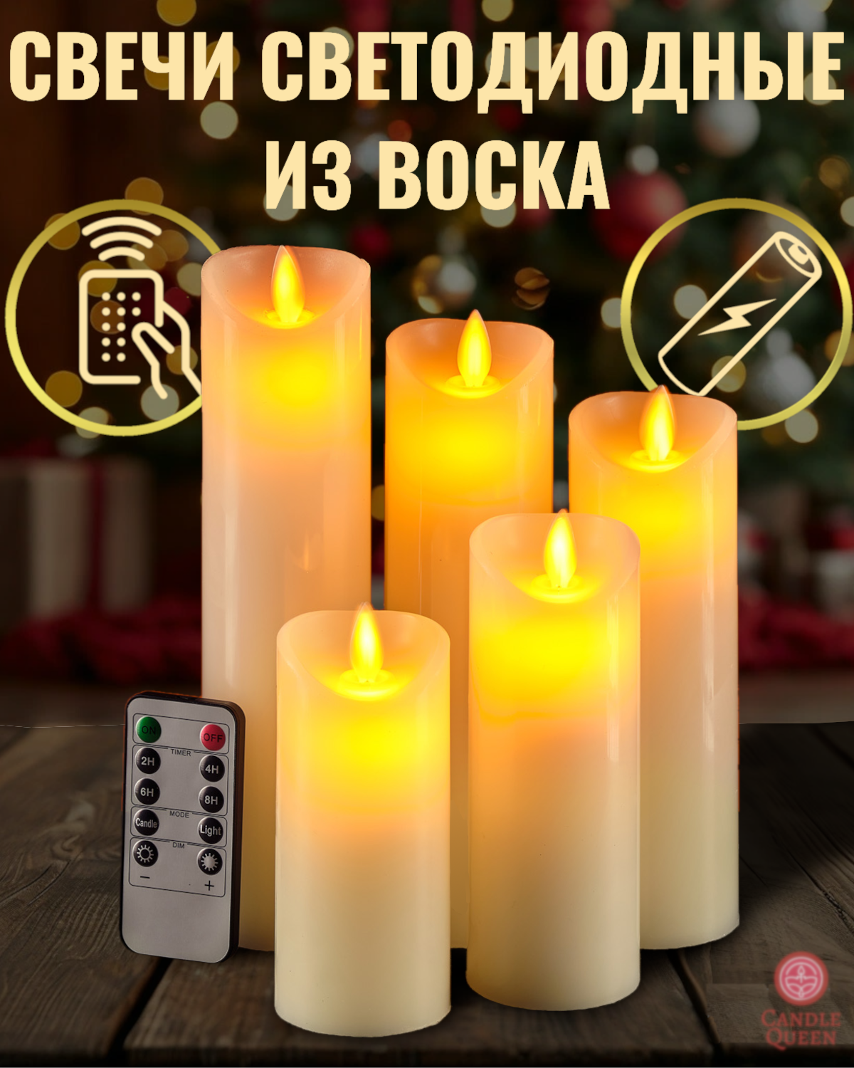 10 цен на Комплект из 5 светодиодных восковых LED свечей с пультом управления на батарейках R5S19MT022