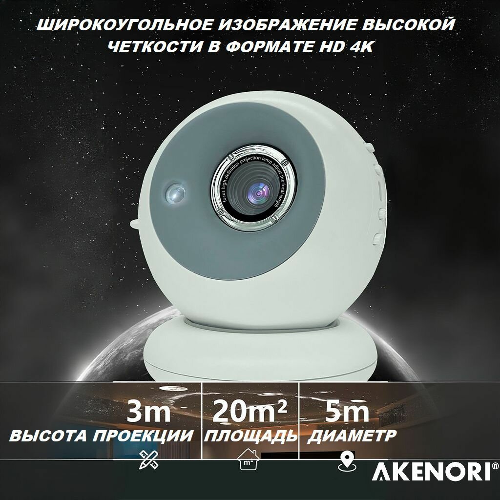 Проектор звездного неба "AKENORI" AGP-2000 , 4К, планетарий, 5Вт, IP16, 13х13 см информация: