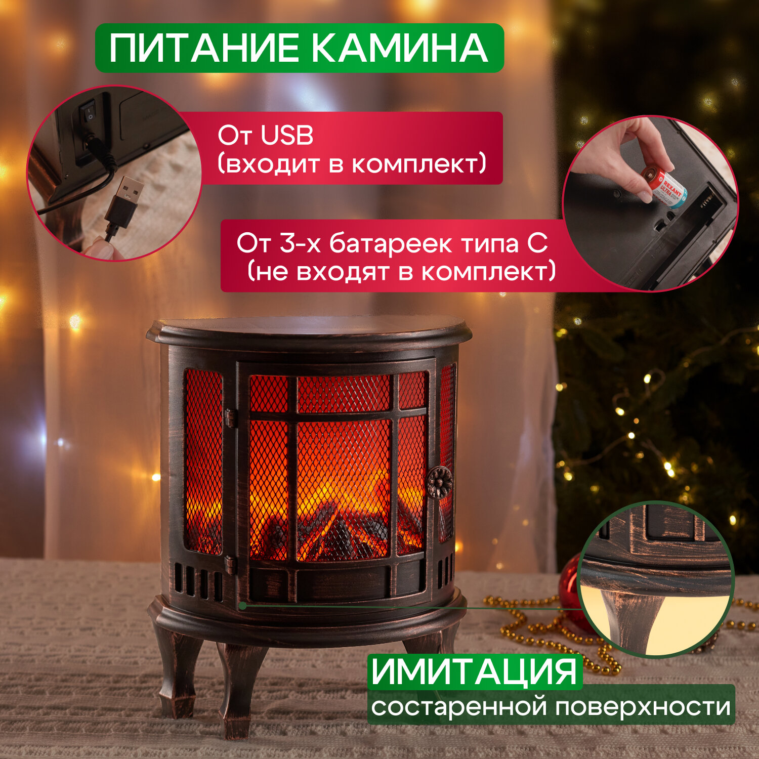 Светодиодный камин светильник Neon-Night, USB/батарейки, с эффектом живого огня, 30х24,8 см информация: