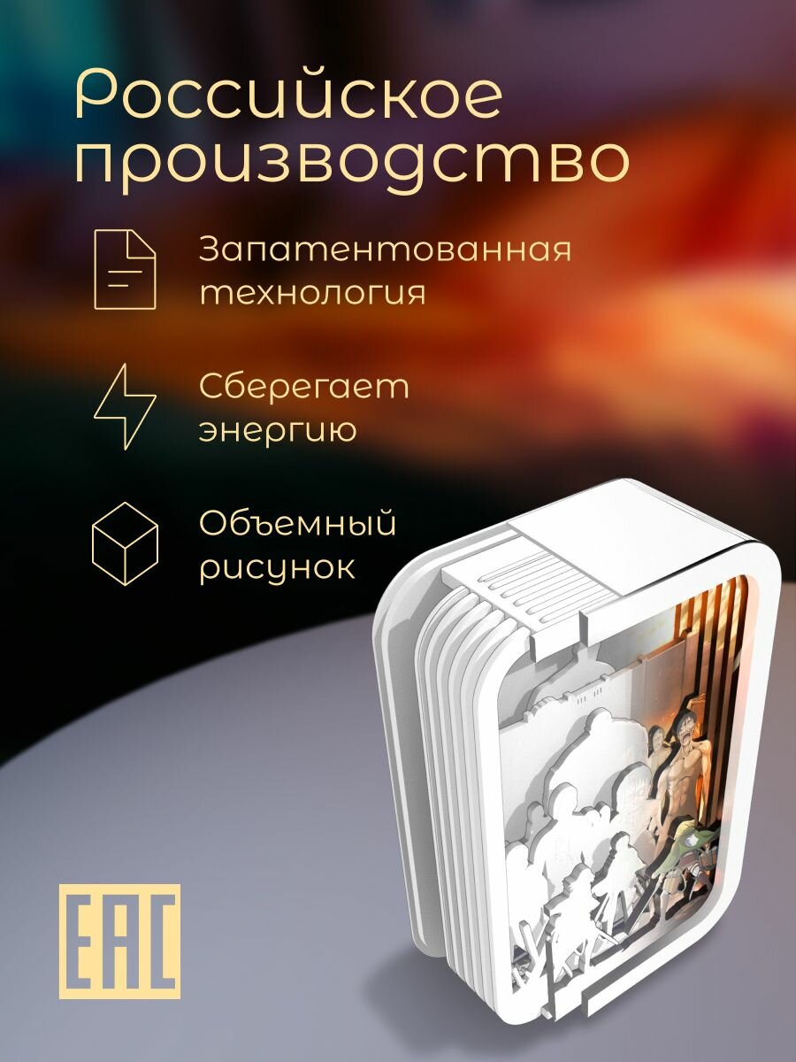 3D ночник картина Атака Титанов / настольный 3Д светильник от VozWooden информация: