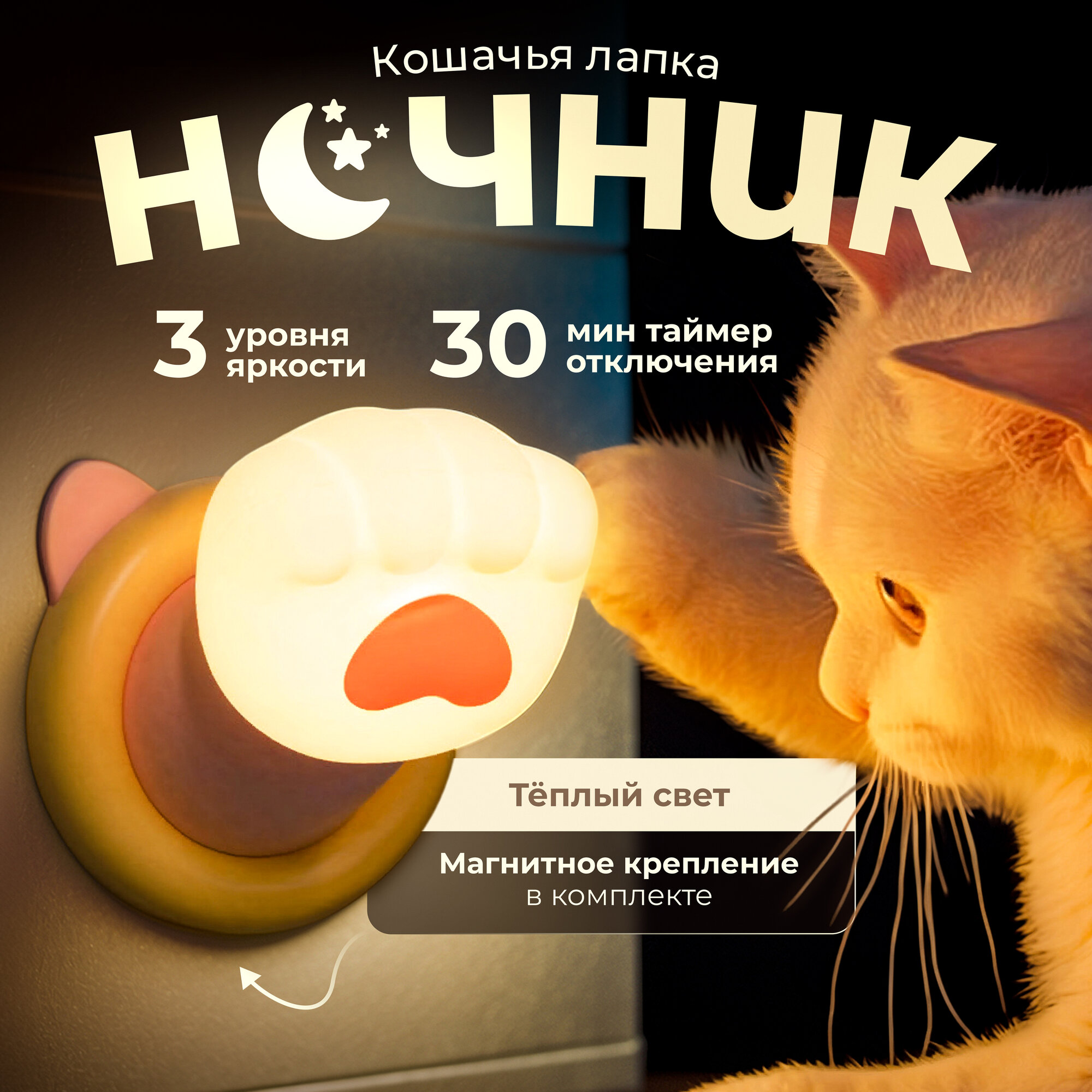 10 цен на Ночник "Кошачья Лапка": USB-зарядка, таймер 30 мин, магнитный крепеж, 3 уровня яркости