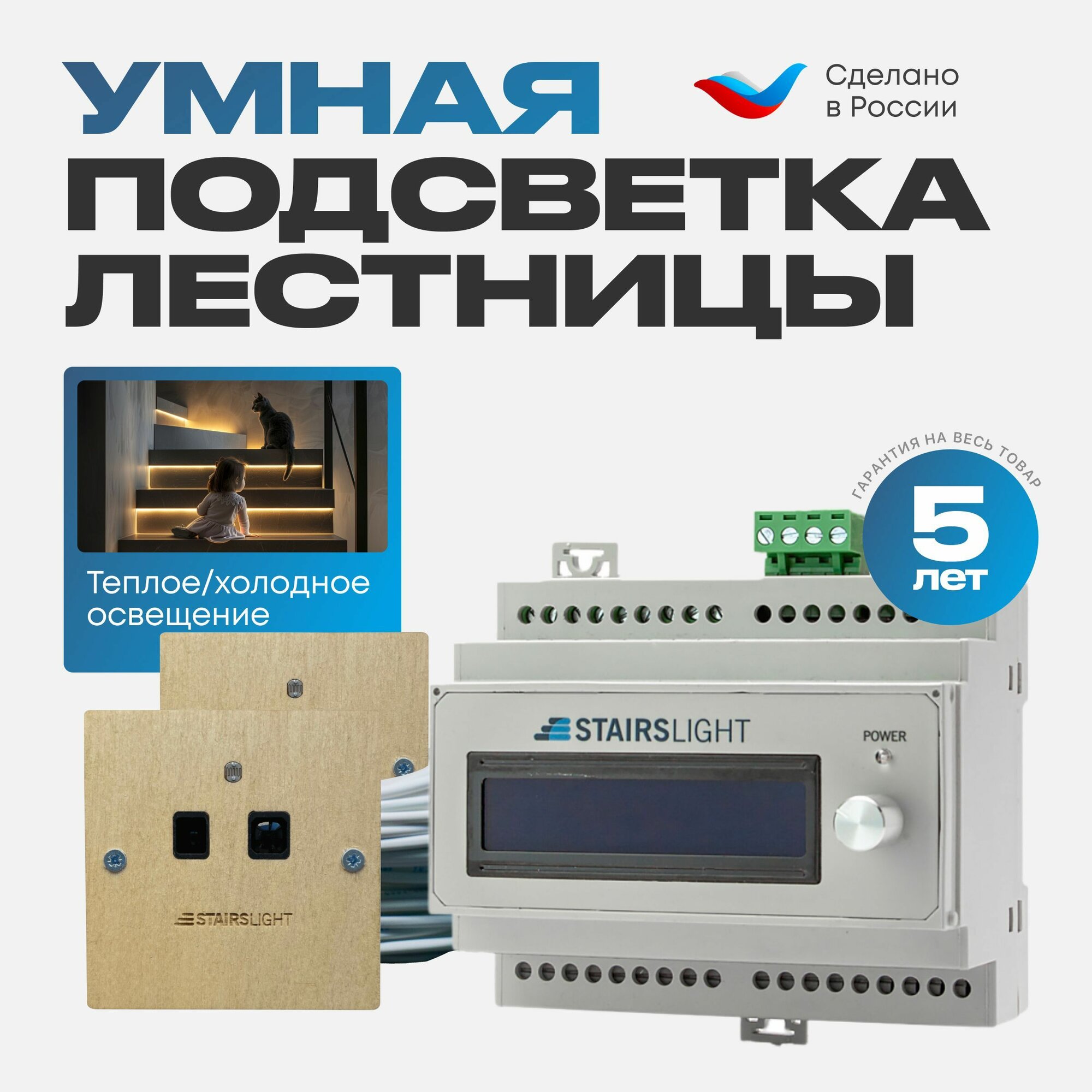 Отзывы на Подсветка для лестницы базовый комплект до 18 ступеней с датчиками движения, бежевый цвет