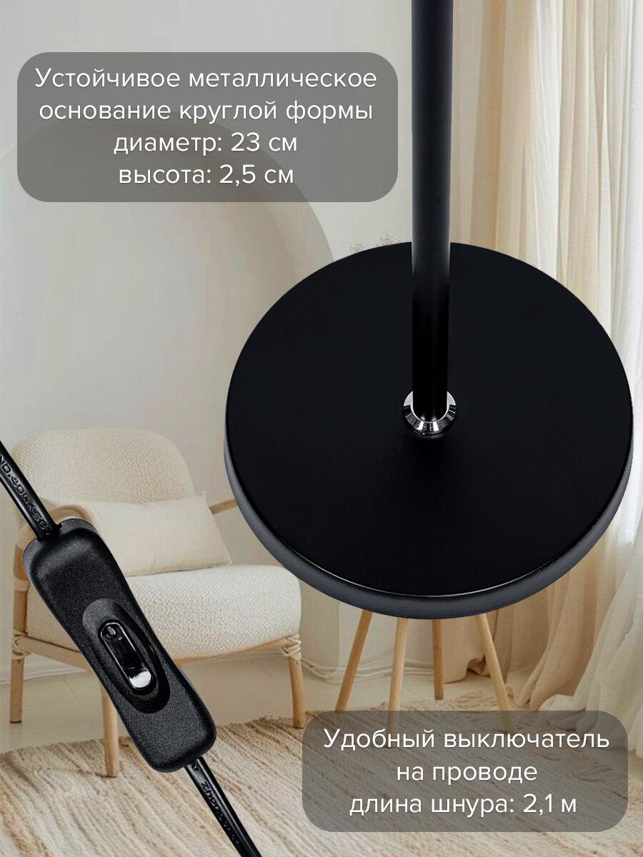 Торшер напольный / Светильник E27 / Лампа для чтения 176 см, черный информация:
