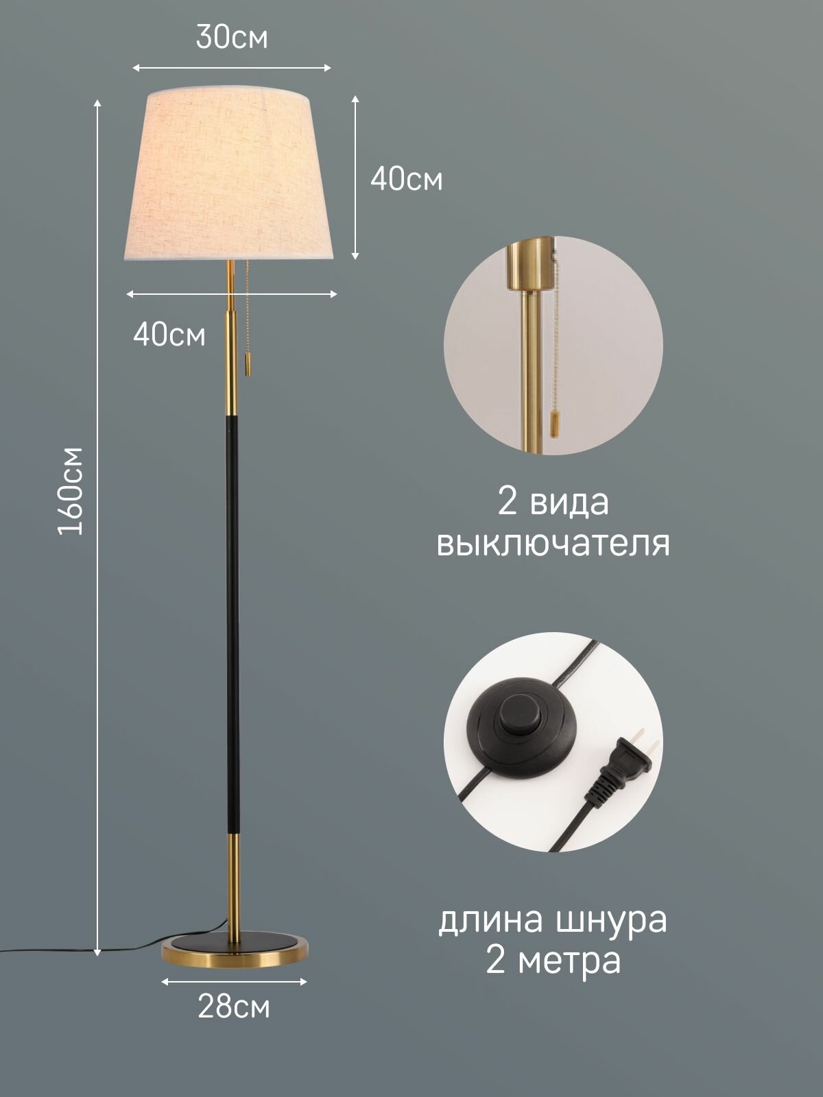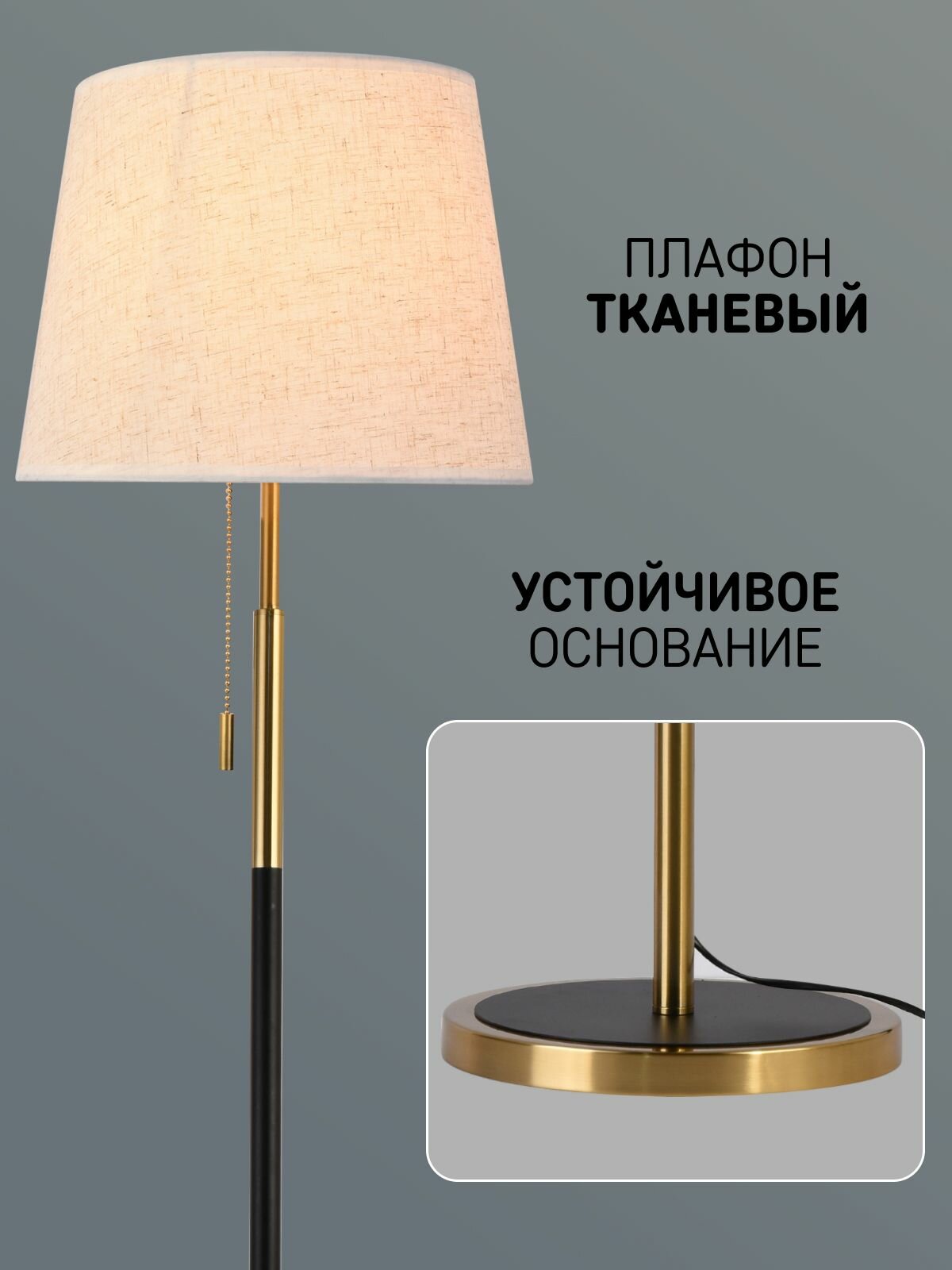 Отзывы на Торшер напольный ЭлисСвет светильник с тканевым абажуром, золотой 5868LF/1L BK+GD