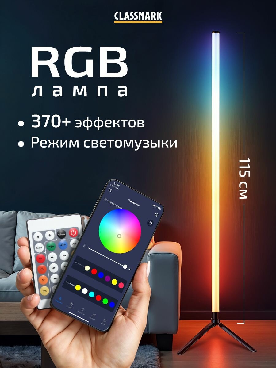 Лампа напольная Classmark светильник, торшер светодиодный RGB и LED, управление со смартфона и через пульт ДУ информация:
