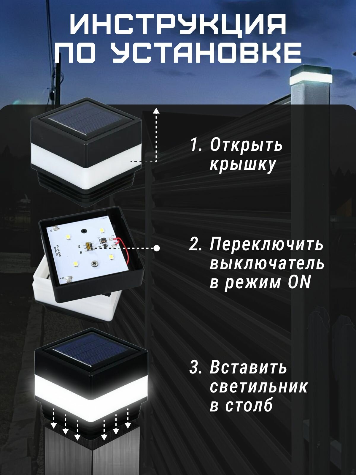 Отзывы на Заглушка-светильник для заборного столба 80*80 мм на солнечной батарее - декор для забора
