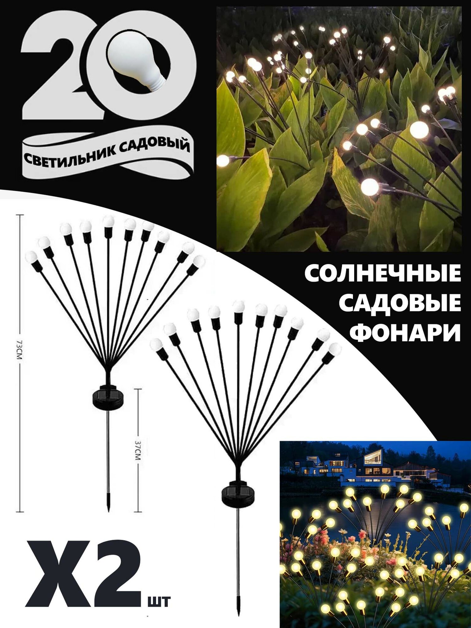 2 шт Уличный фонарь светильник на солнечной батарее садовый Светлячки Еврогарант информация: