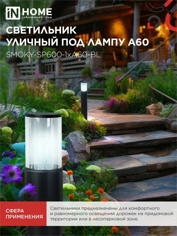 Светильник уличный напольный ТБУ SMOKY-SP600-1xA60-BL алюминиевый 600мм черный IP54 IN HOME информация: