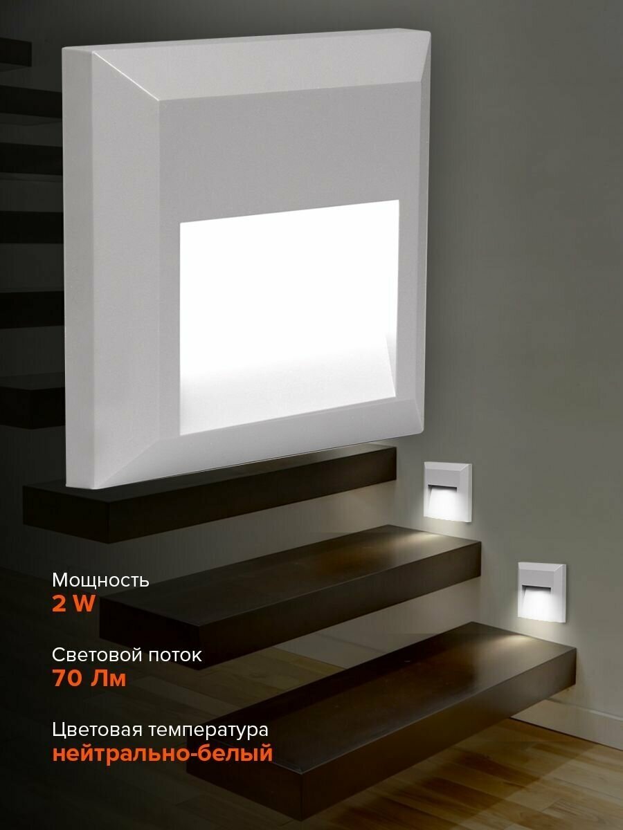 10 цен на Светильник светодиодный уличный / интерьерный/ фасадный /накладной / для ступеней / для лестниц PST/W S124124 2w 4000K