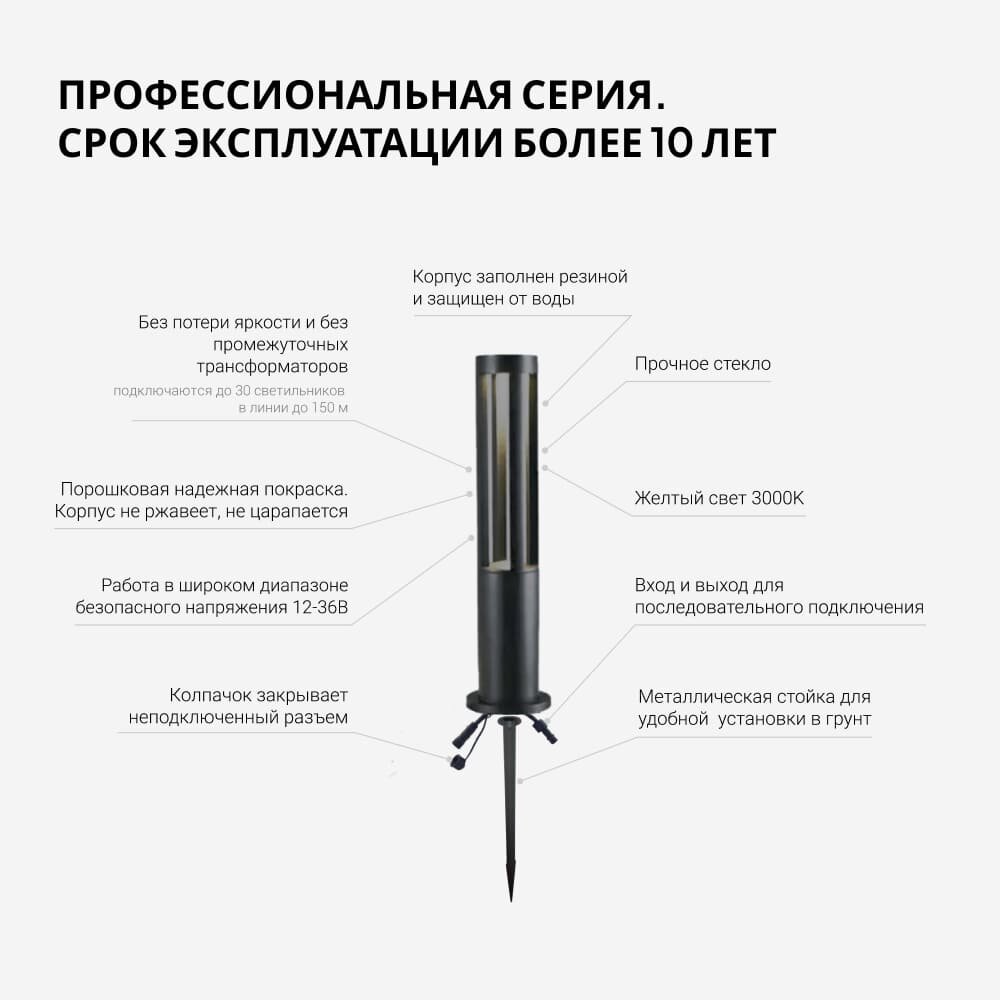 Светильник-столбик для дорожек и тропинок, 7Вт со стойкой основанием, 12-32В, 60см информация: