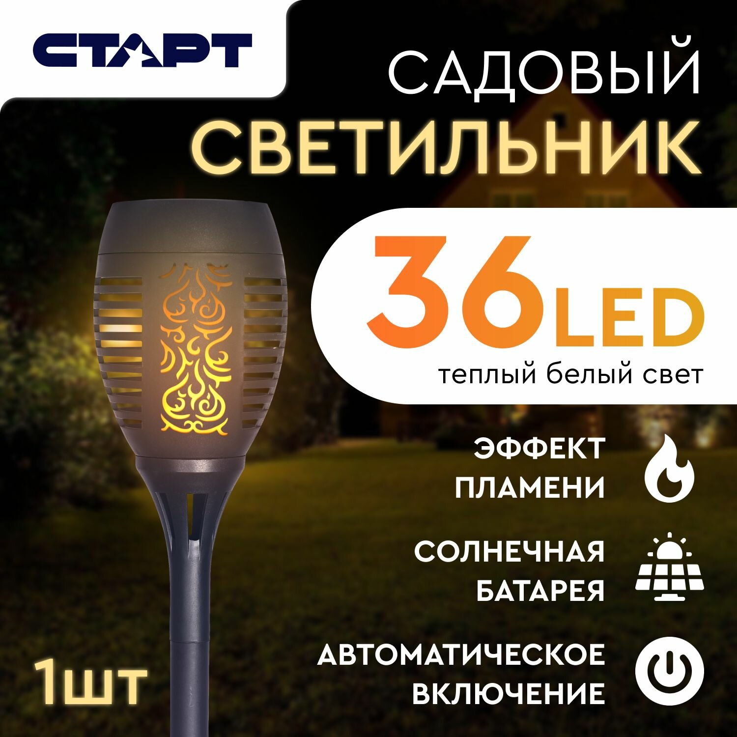 Уличный фонарь светильник на солнечной батарее садовый Факел СТАРТ с эффектом пламени, 36 LED информация:
