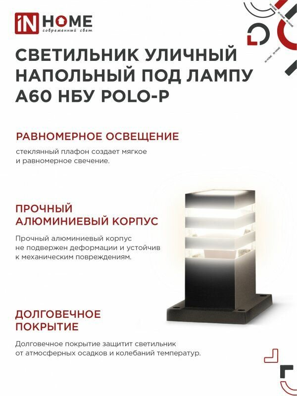 Светильник уличный напольный НБУ POLO-SP300-1xA60-BL алюминиевый 300мм черный IP54 IN HOME информация: