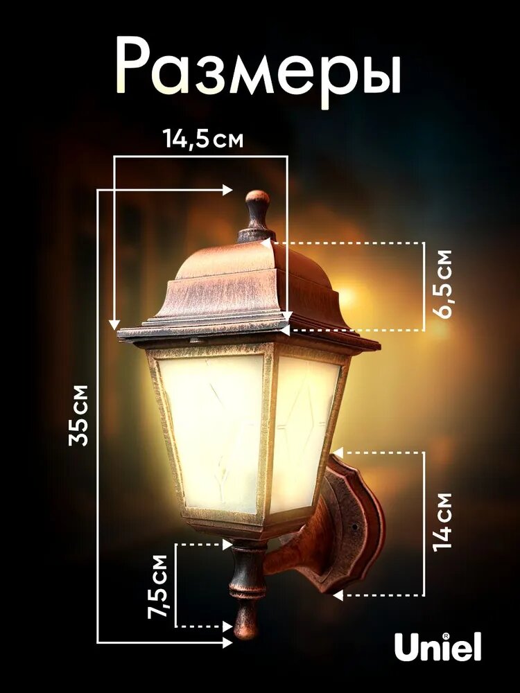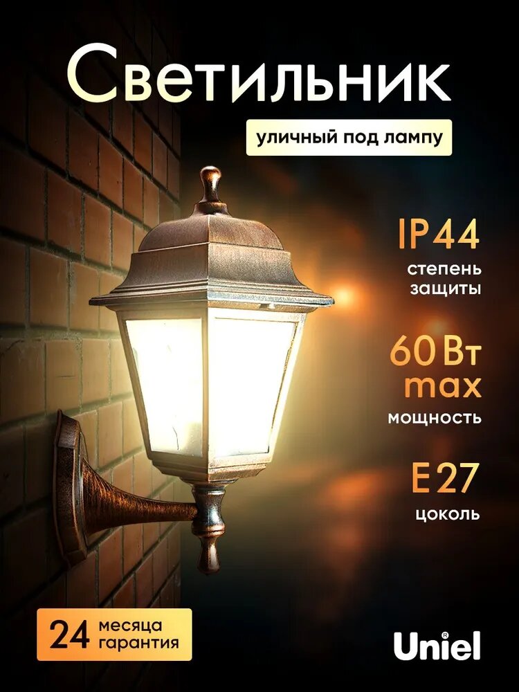 Отзывы на Светильник уличный, под лампу Е27. Архитектурный накладной, медный, Uniel