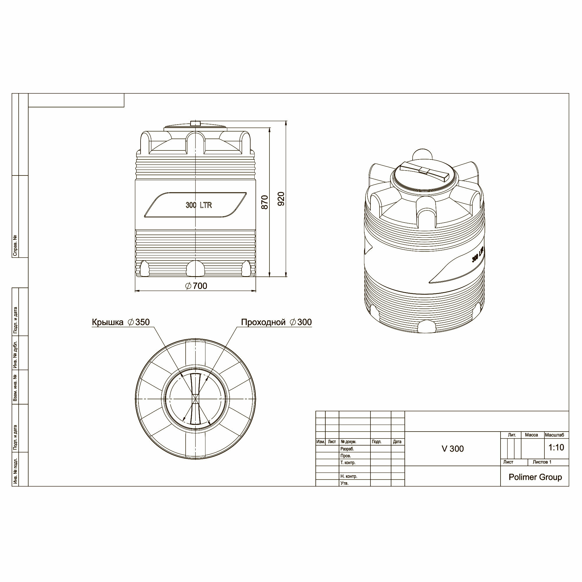 Емкость 300 литров Polimer Group V300 для воды/ топлива/ соления/ продуктов, цвет белый информация: