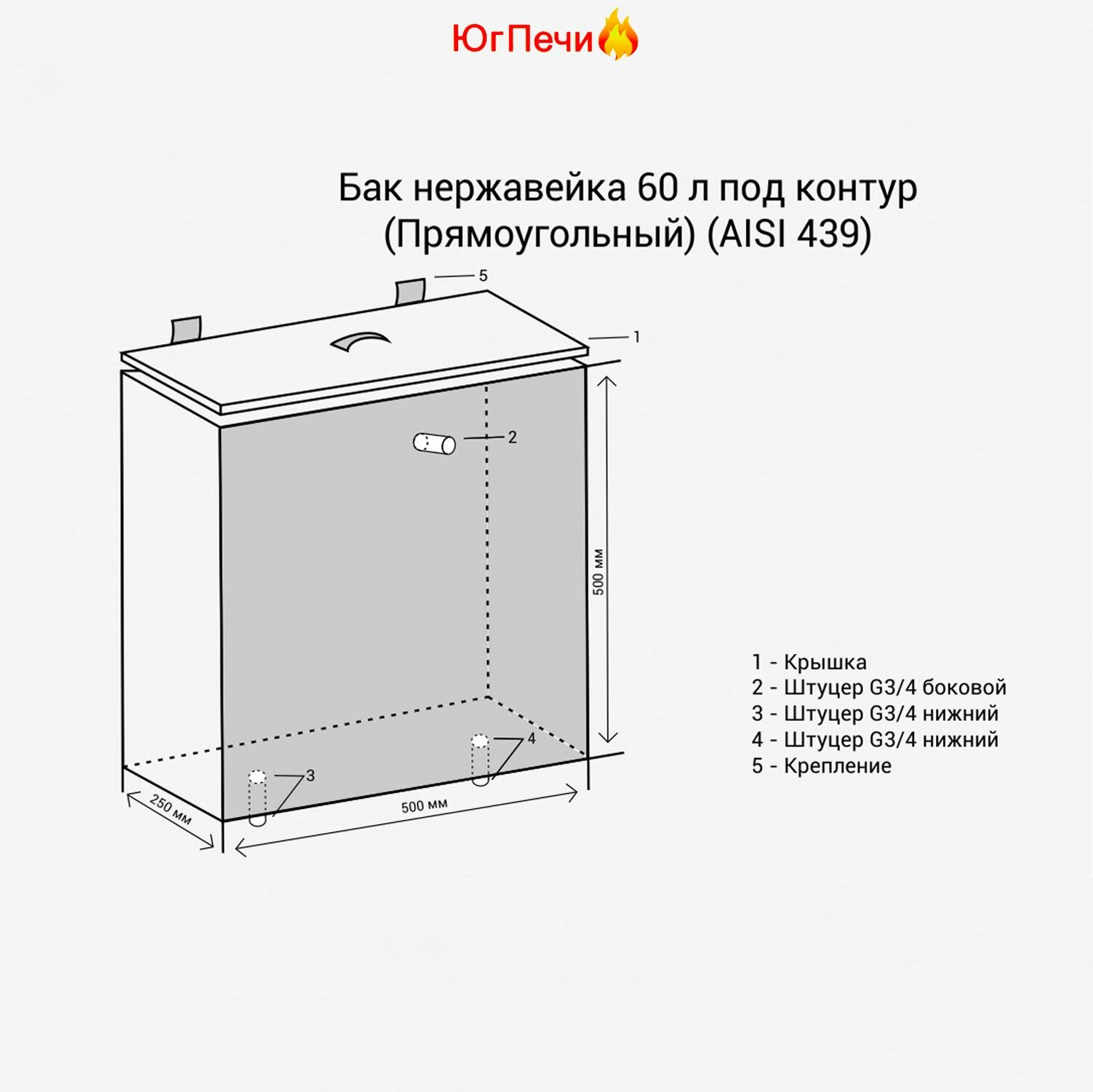 Бак под контур "Везувий", нержавеющая сталь 439 , 60 литров, 1мм толщина 50х50х25 информация: