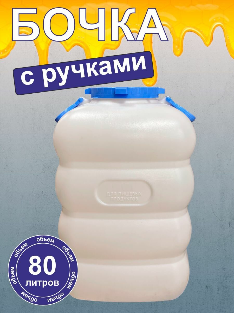 Бак пищевой пластиковый с крышкой и ручками, объем 80 литров информация: