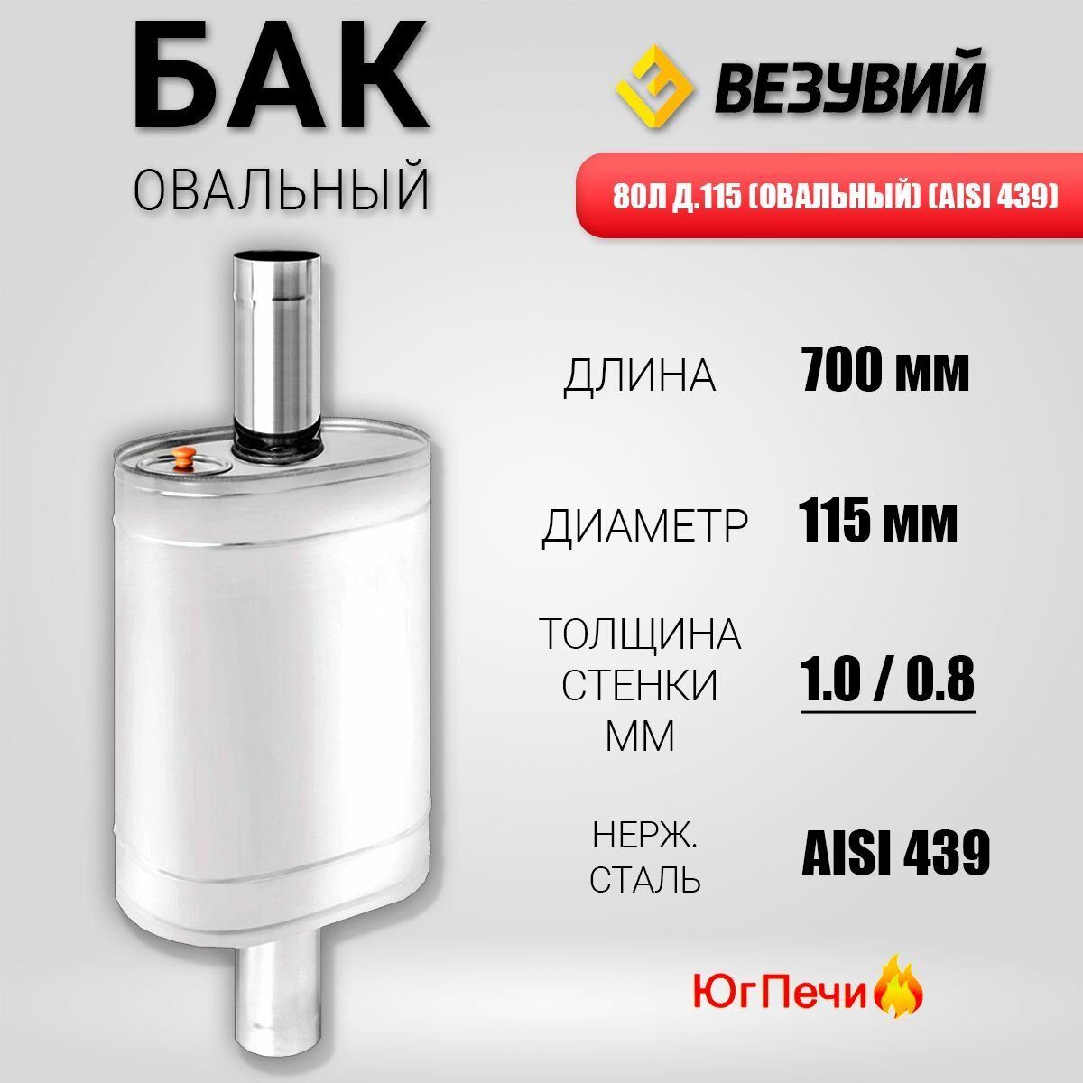 Бак печной овальный 70, 304-0.8 мм, 115/D115 (К) для бани ТиС