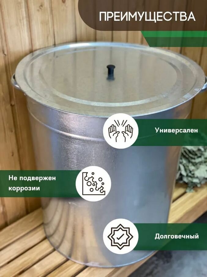 Бак оцинкованный с крышкой 100 литров для бани и сауны, емкость тара для воды на дачу информация: