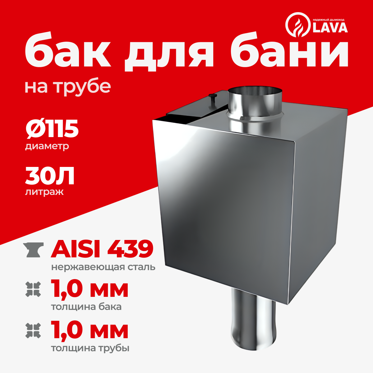 10 цен на Бак LAVA для бани на трубе 30 литров, d115, AISI 439 1,0 мм, МП