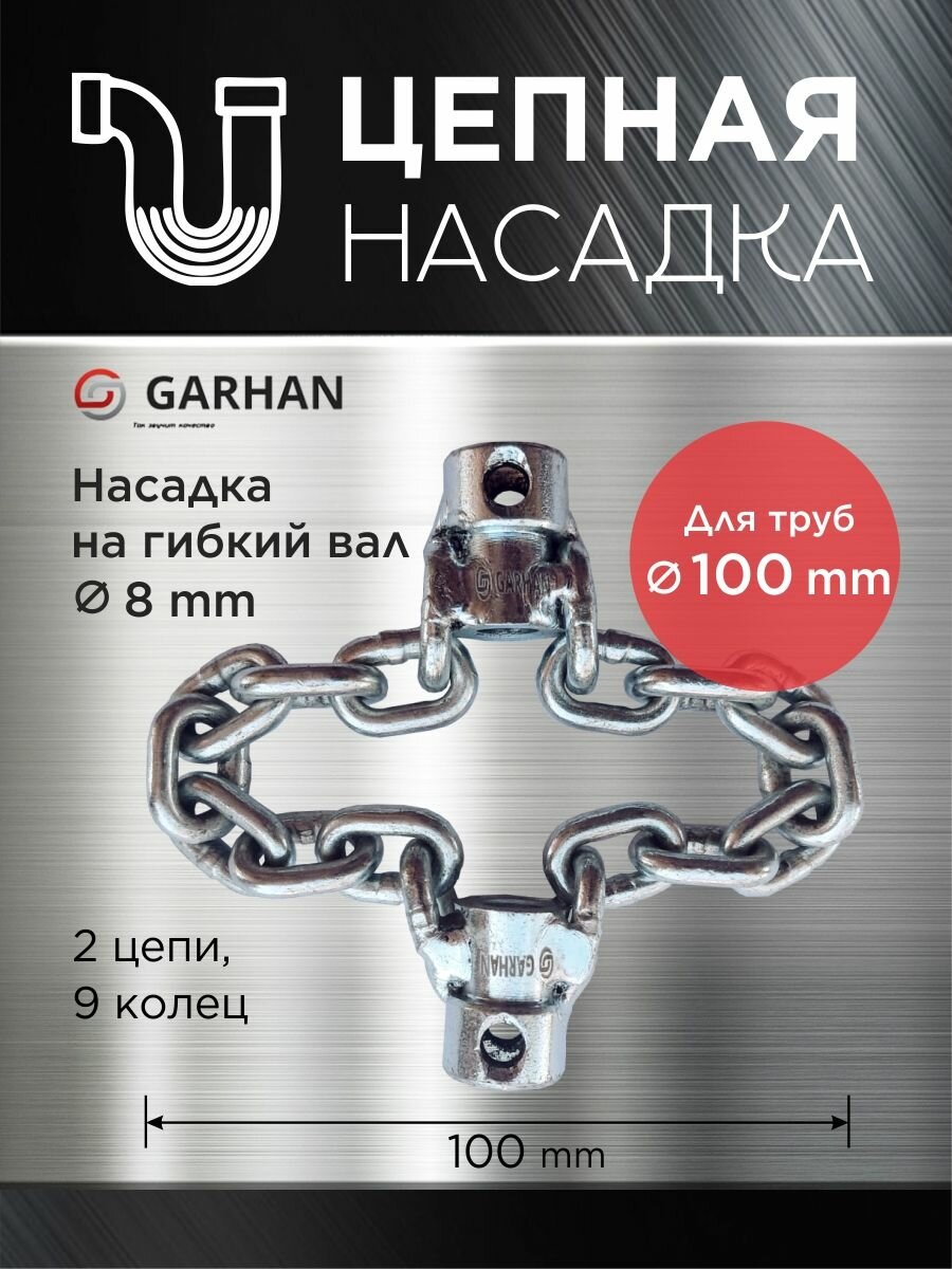 Двойная цепная насадка на гибкий вал 8mm для труб до 100mm. информация: