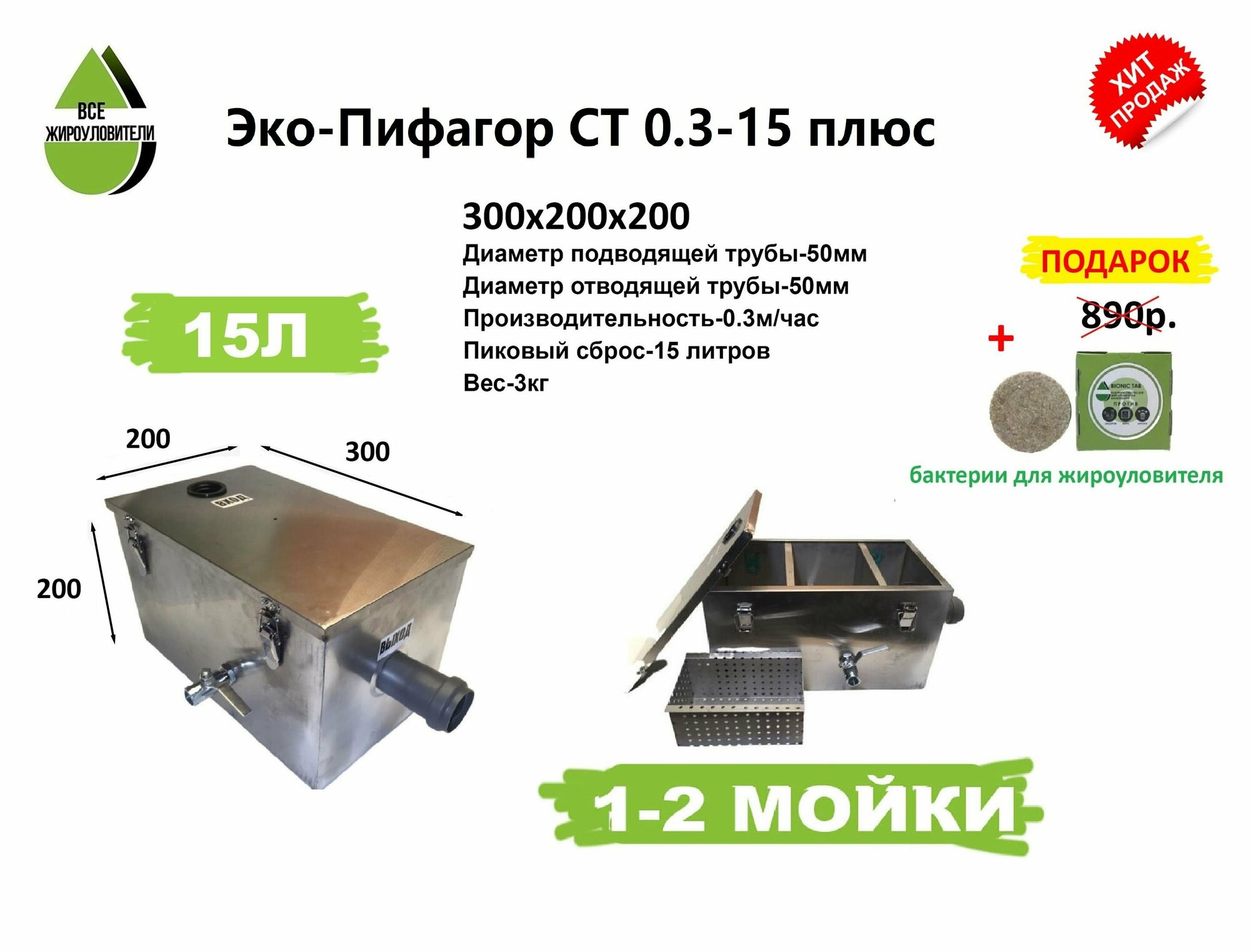 Жироуловитель металлический Эко-Пифагор СТ 0,3-15 плюс. информация: