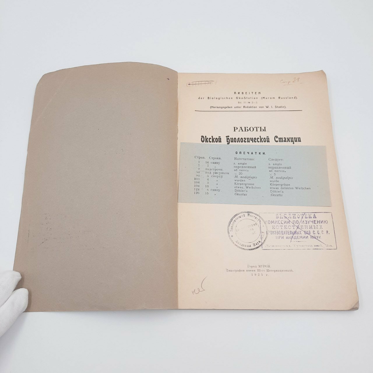 Жадин В. И. "Работы Окской биологической станции в гор. Муроме", т. 3, №№2-3, бумага информация: