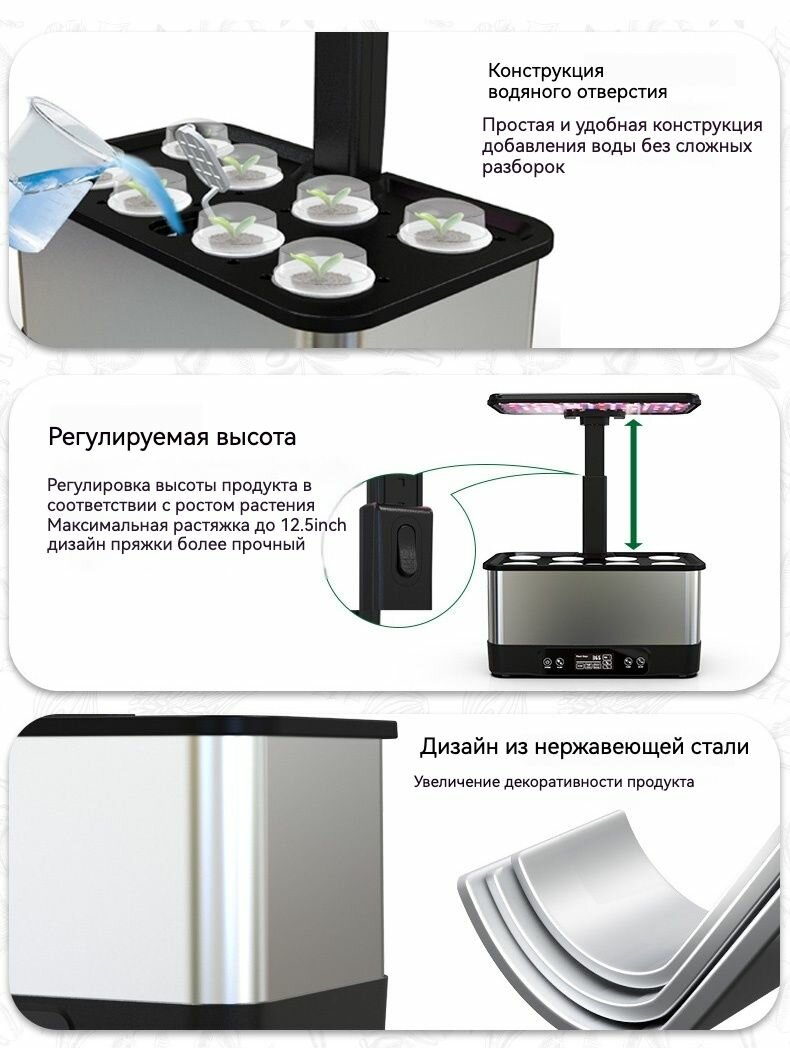 Умная гидропонная установка с поддержкой приложения и WiFi, из нержавеющей стали информация:
