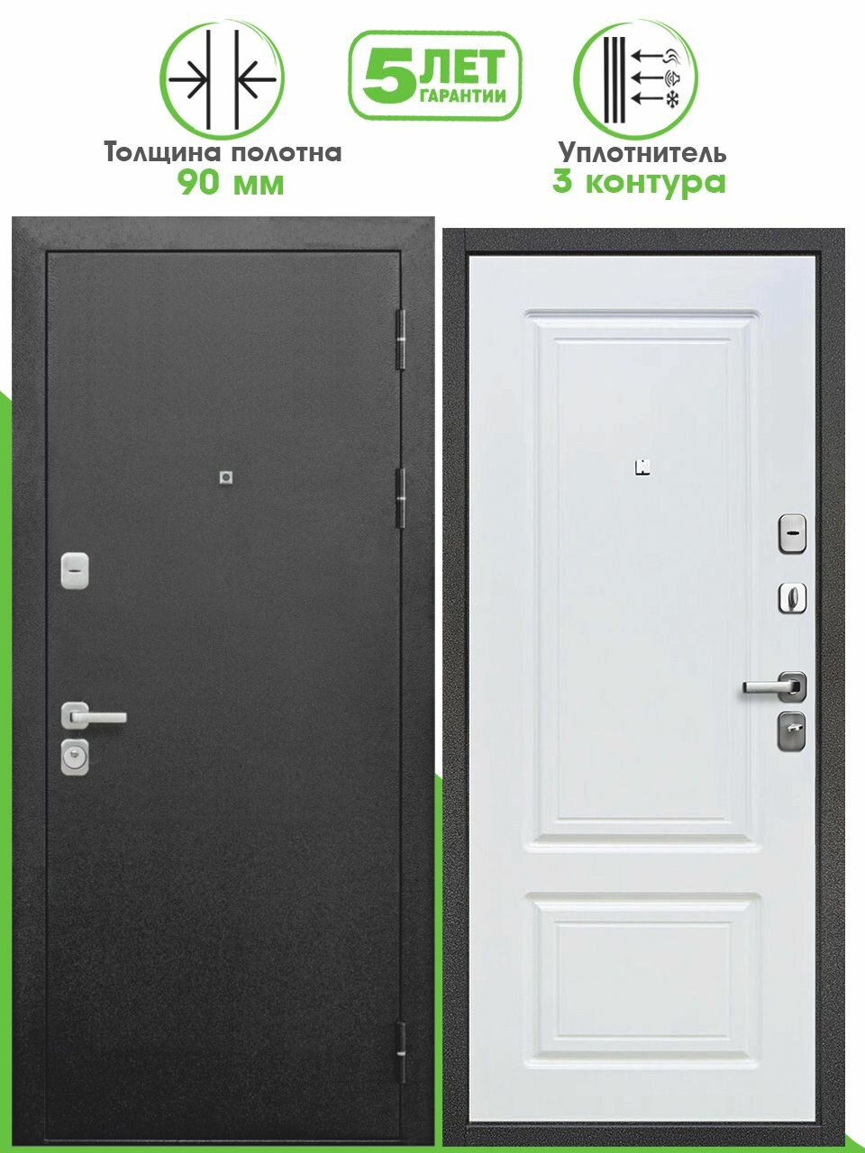 Дверь входная мегатрон WOOD 1 Ясень Дип Графит - Белый снег 860 Правая
