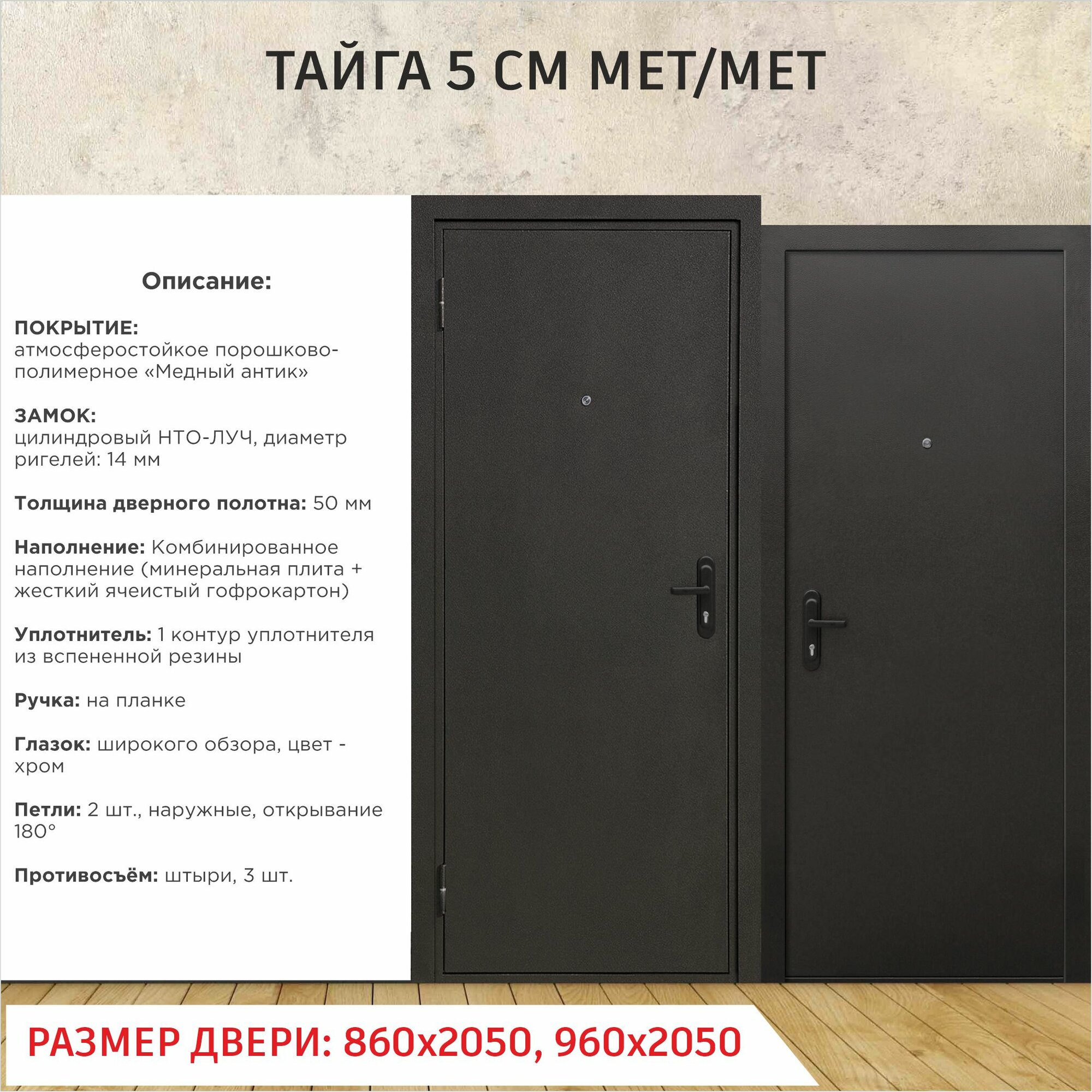 Дверь входная металлическая Тайга 5 см мет/мет 2050х960 Левая информация: