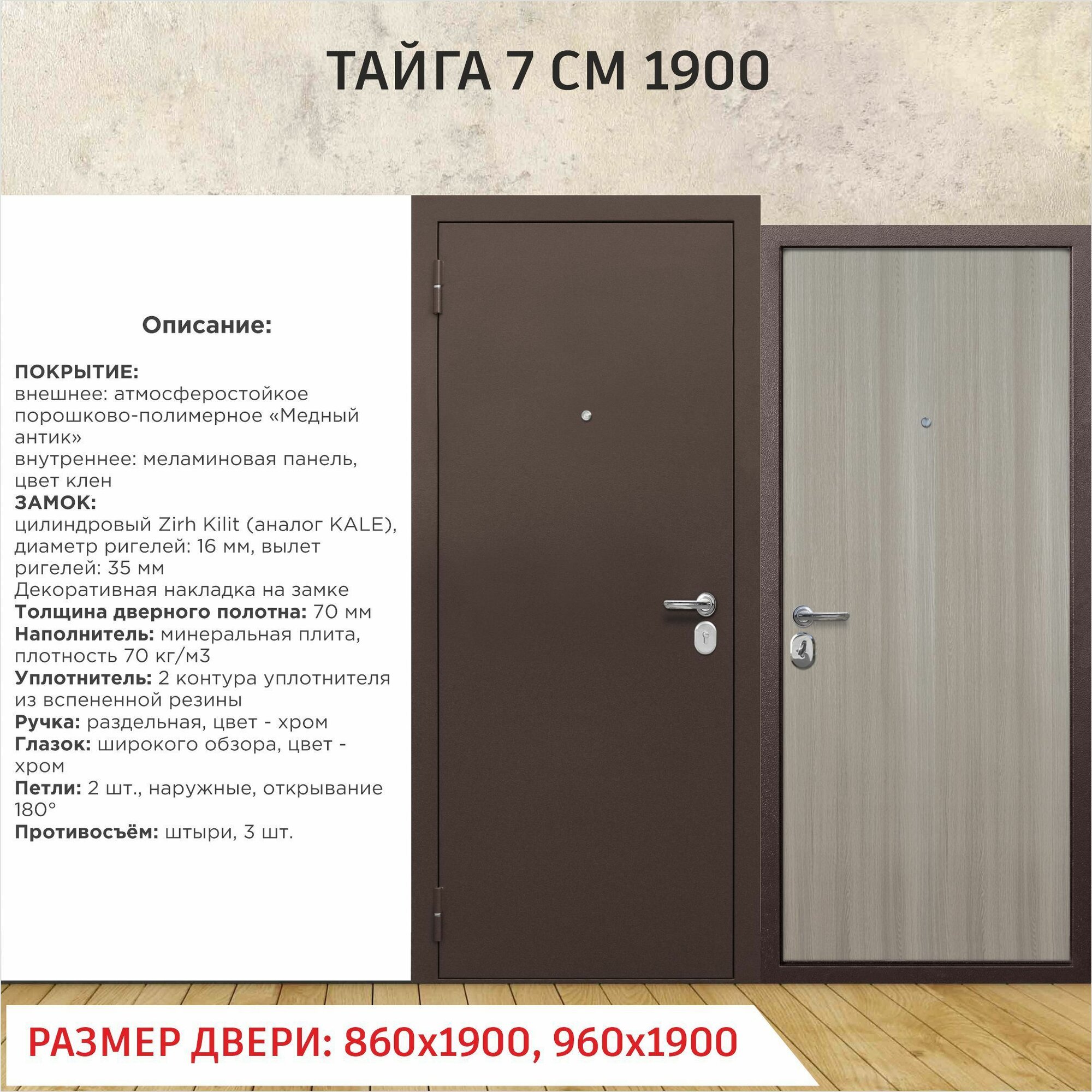 10 цен на Дверь входная металлическая Тайга 7 см Антик медь/Клен 1900х860 Левая
