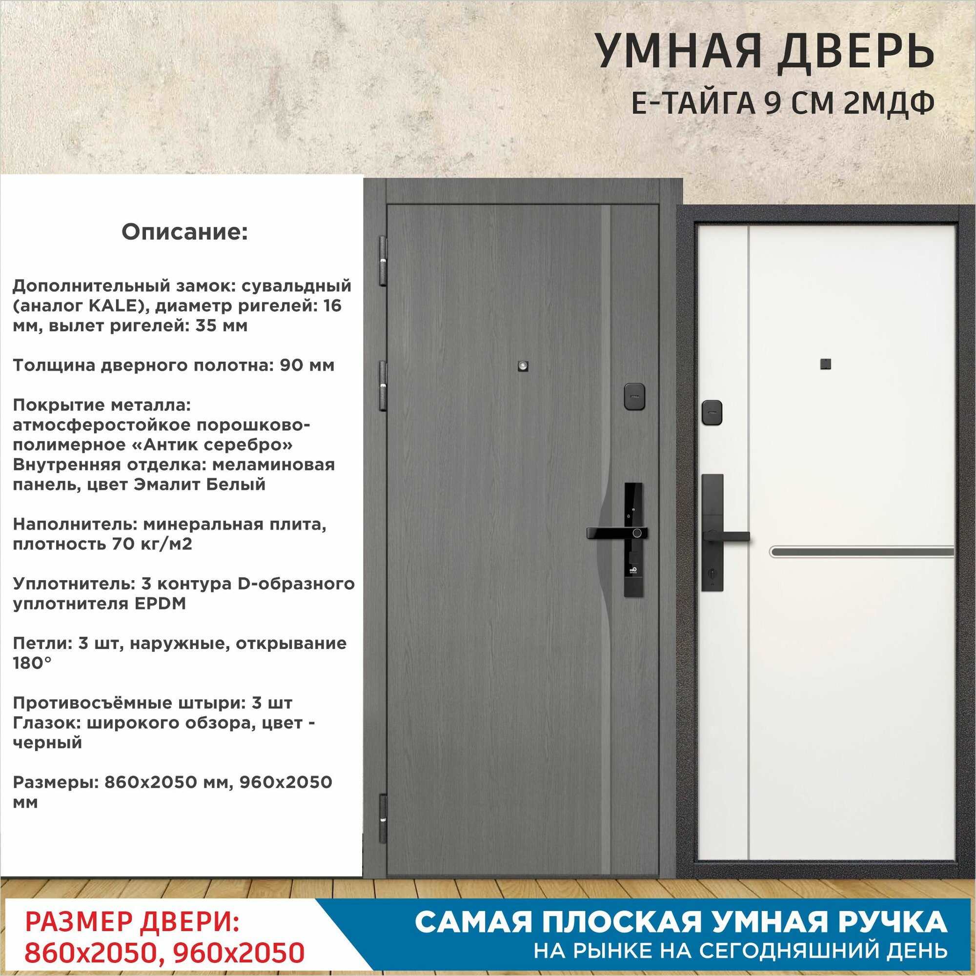 Дверь входная с Умным Эл. замком Gimmel F77 металлическая Е-Тайга 9 см 2МДФ 2050х860 Левая информация: