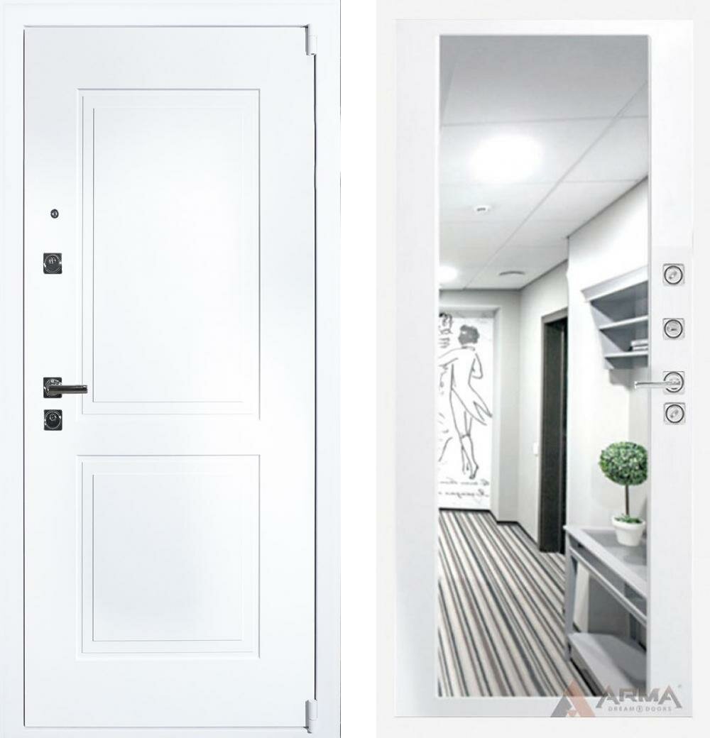 10 цен на Входная дверь Арма Нео Вайт 03 с зеркалом "Белый матовый" 960x2050, открывание правое