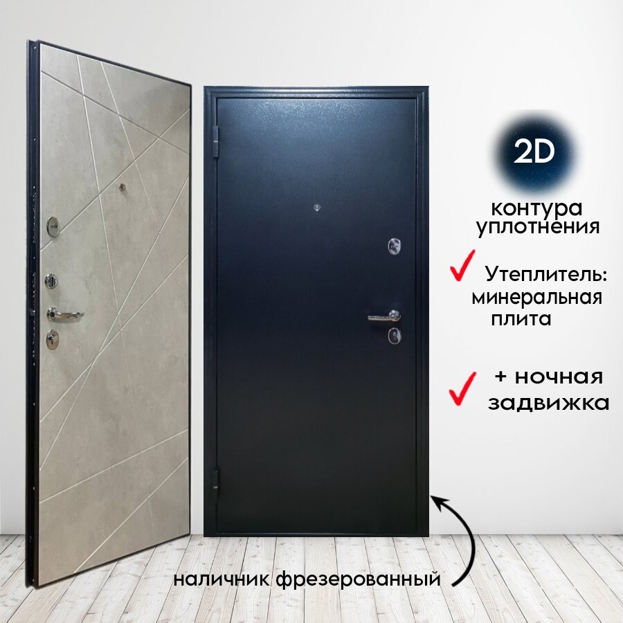 Дверь входная мегатрон WOOD 2 Бетон графит - Белое дерево 960 Правая