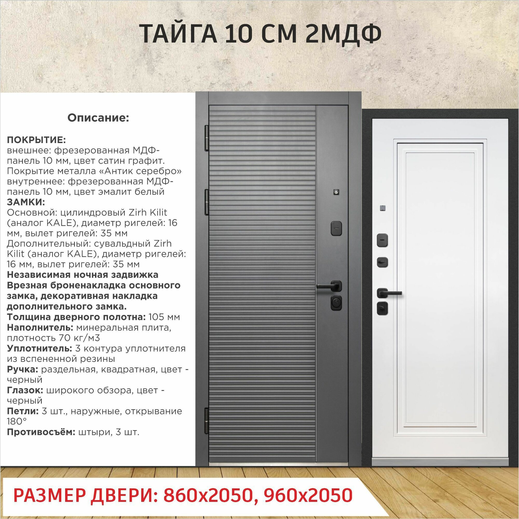10 цен на Дверь входная металлическая Тайга 10 см Эмалит белый 2МДФ 2050х860 Левая
