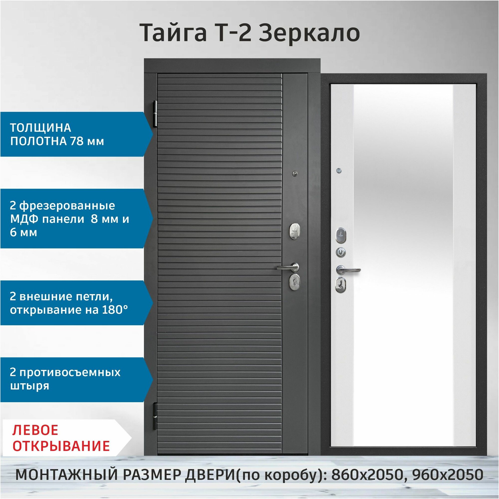 10 цен на Дверь входная металлическая Тайга Т-2 Зеркало 2050х960 Левая Графит - Белый матовый