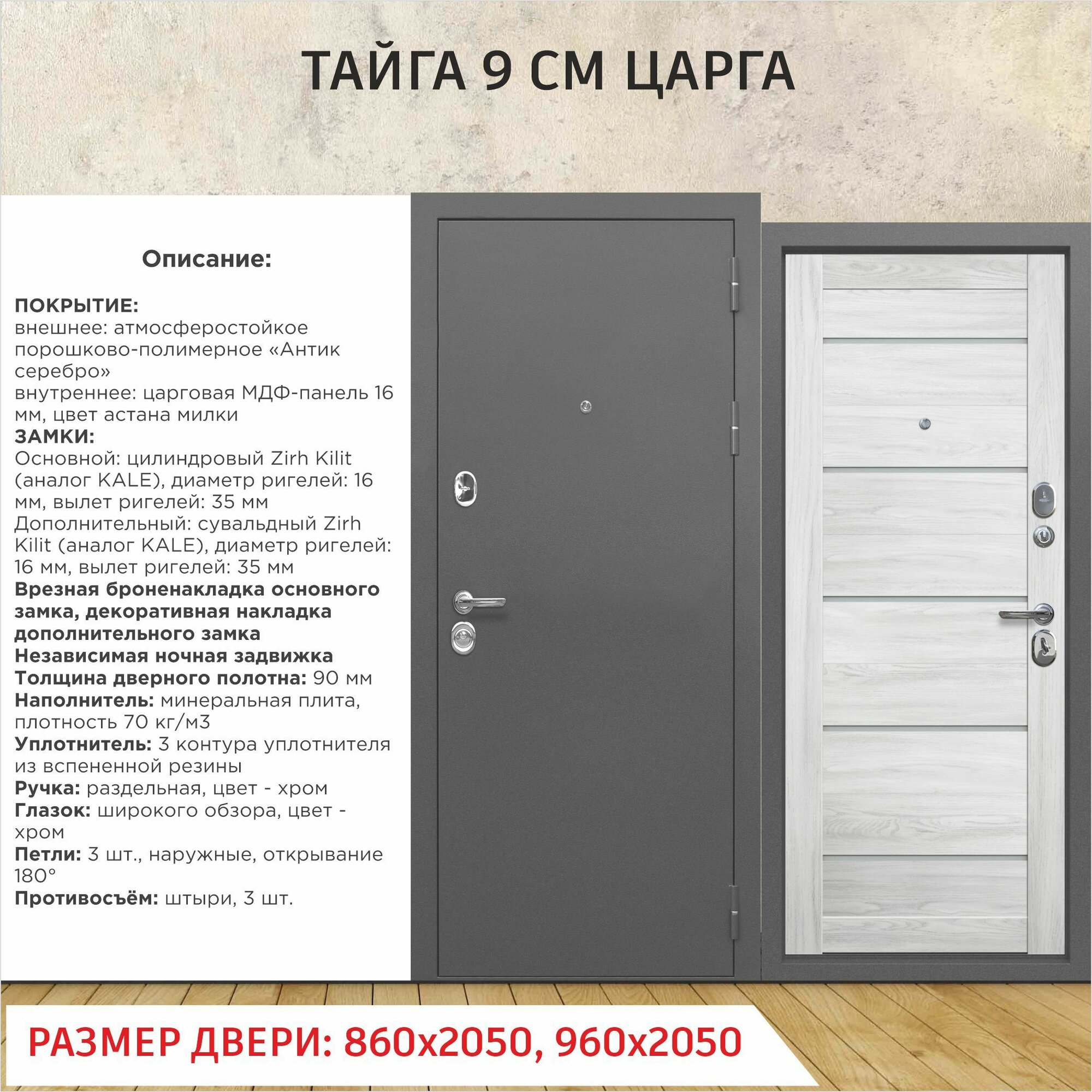Дверь входная металлическая Тайга 9 см Царга Астана милки 2050х860 Правая информация: