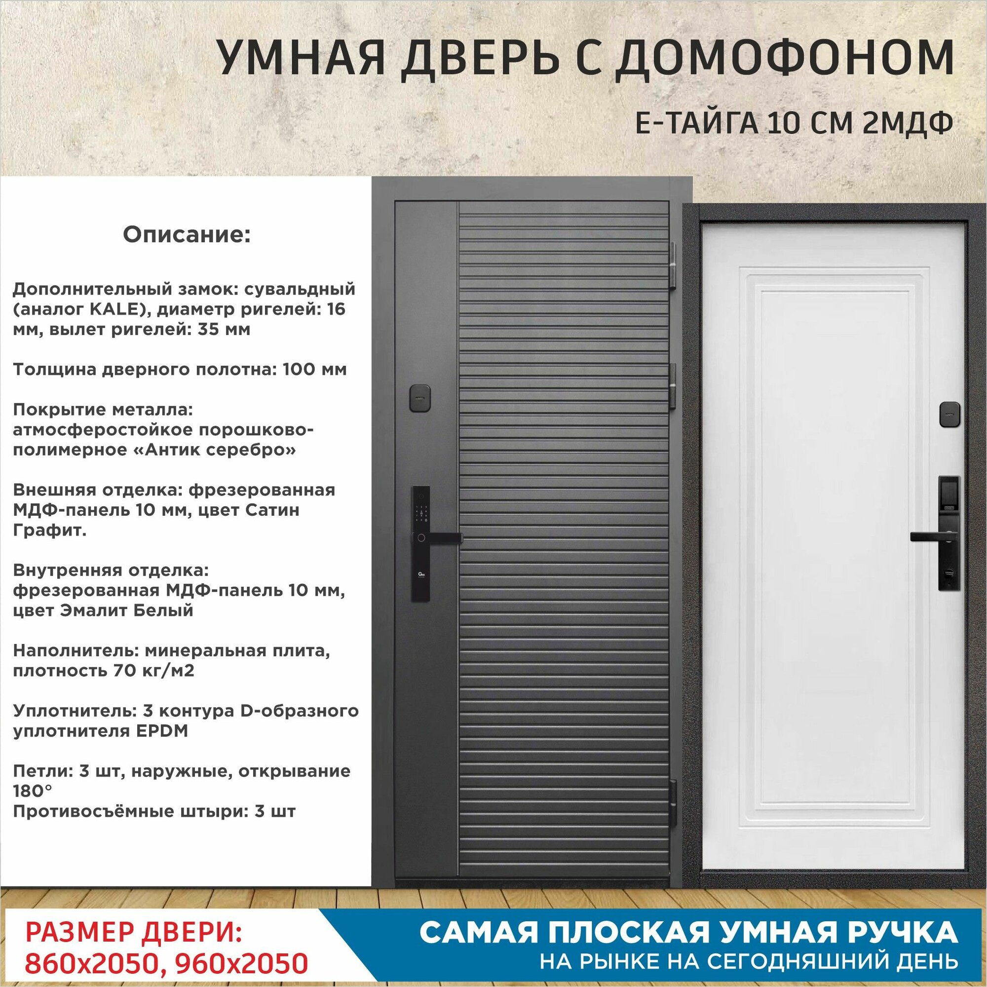 Дверь входная с Умным Эл. замком Gimmel F88 металлическая Е-Тайга 10 см 2МДФ 2050х860 Правая информация: