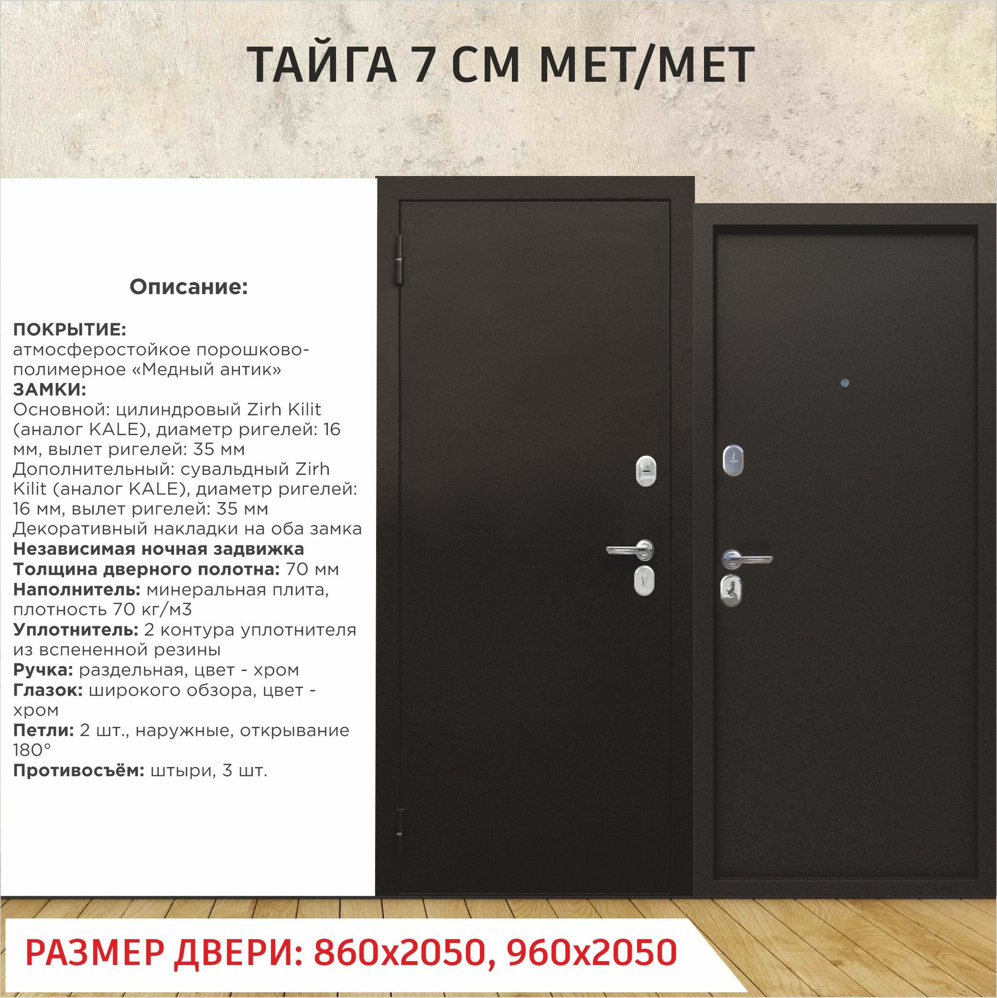 Дверь входная металлическая Тайга 7 см Медный антик мет/мет 2050х960 Левая информация: