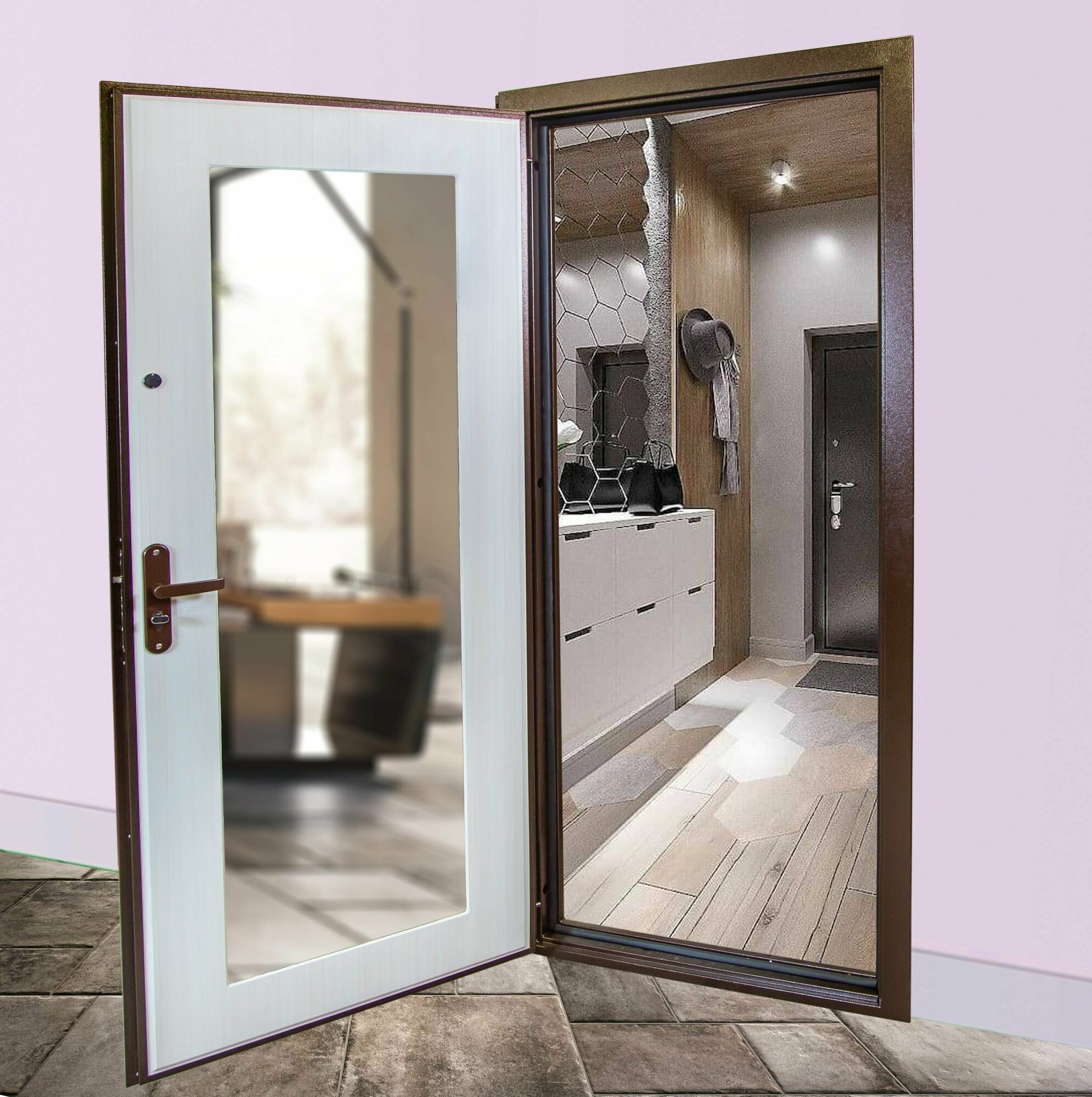Отзывы на Дверь входная DOORBET "ДяДя ФеДя" левая с зеркалом 2050*960 Антик медь/Сандал белый