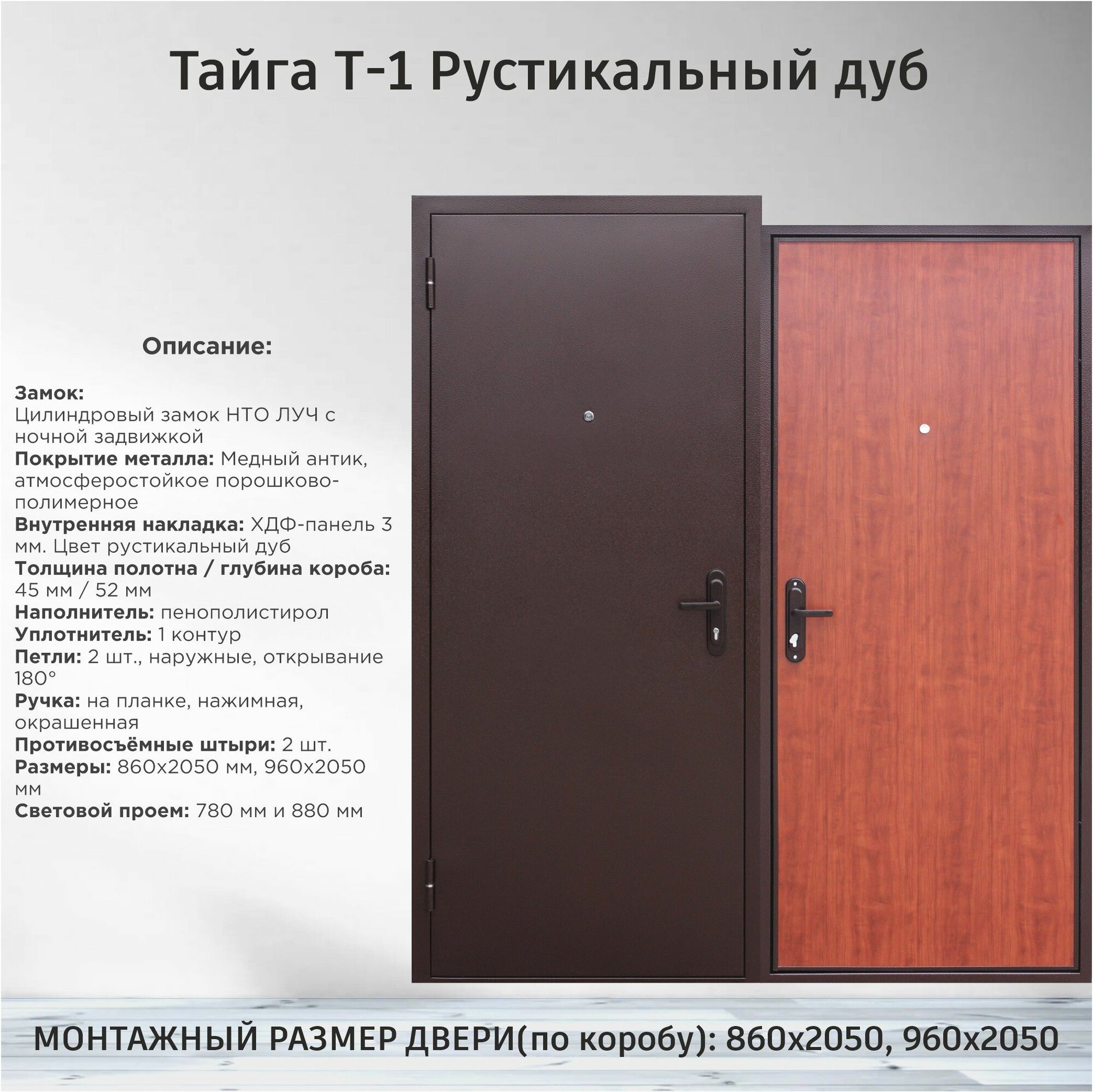 Дверь входная металлическая Тайга Т-1 2050х960 Левая Антик медь - Рустикальный дуб информация: