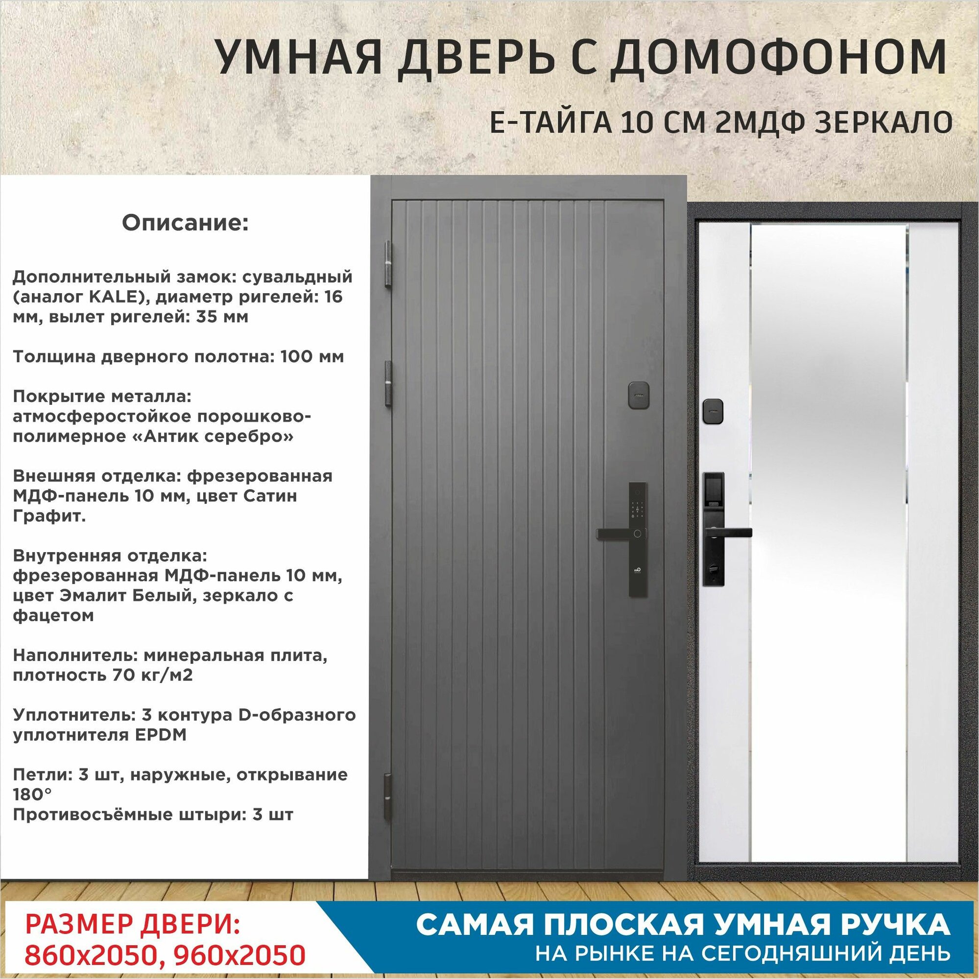 Дверь входная с Умным Эл. замком Gimmel F88 металлическая Е-Тайга 10 см 2МДФ Зеркало 2050х960 Левая информация: