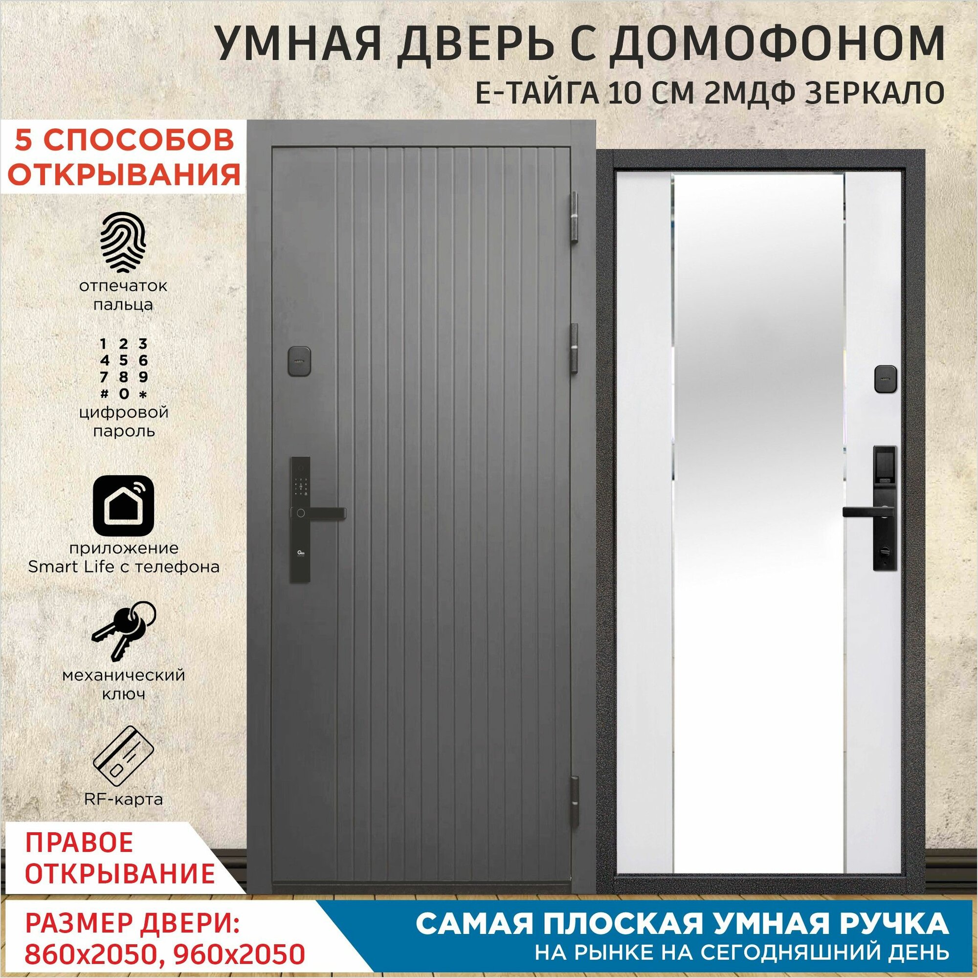 10 цен на Дверь входная с Умным Эл. замком Gimmel F88 металлическая Е-Тайга 10 см 2МДФ Зеркало 2050х960 Правая