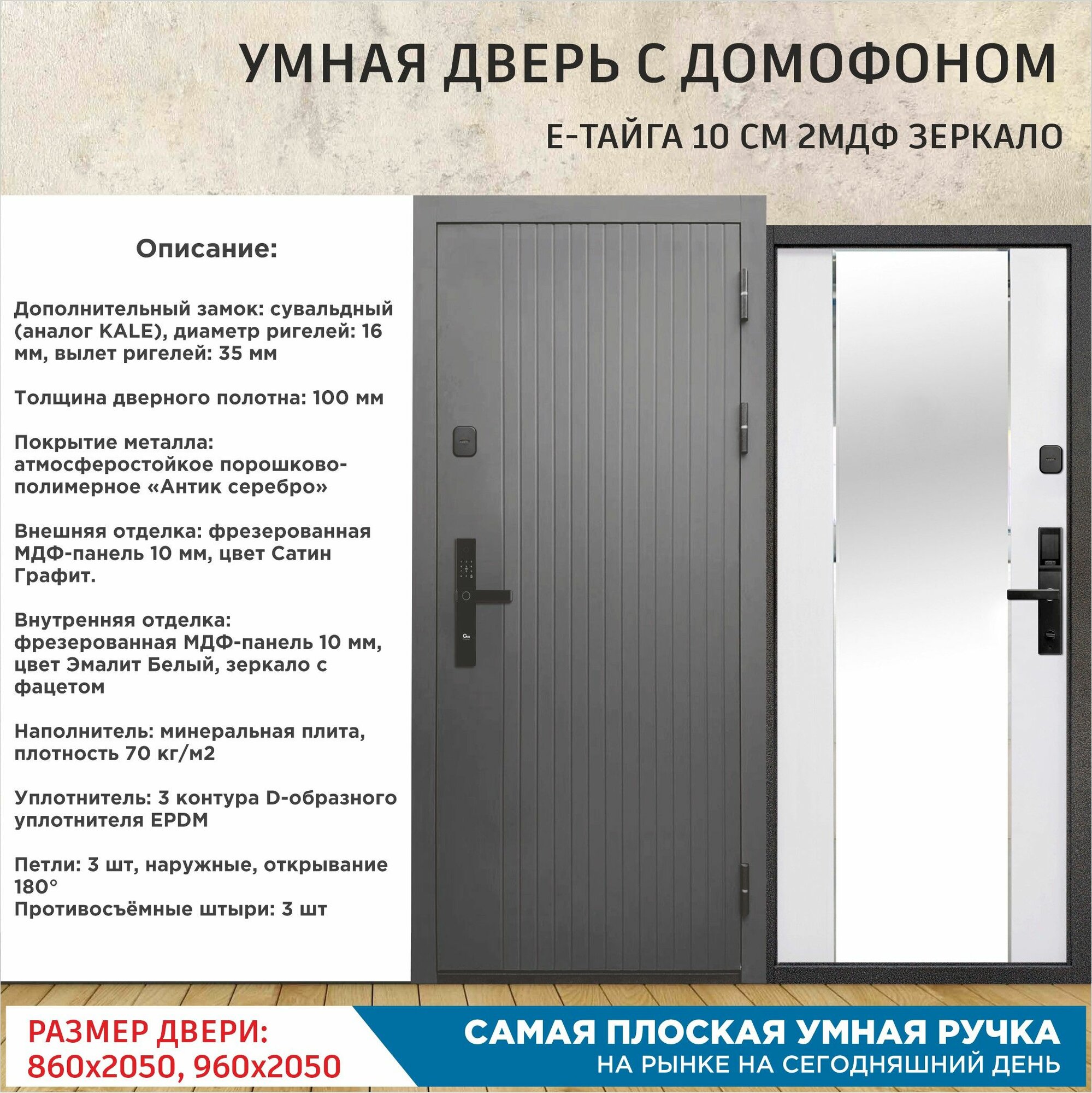 Дверь входная с Умным Эл. замком Gimmel F88 металлическая Е-Тайга 10 см 2МДФ Зеркало 2050х960 Правая информация: