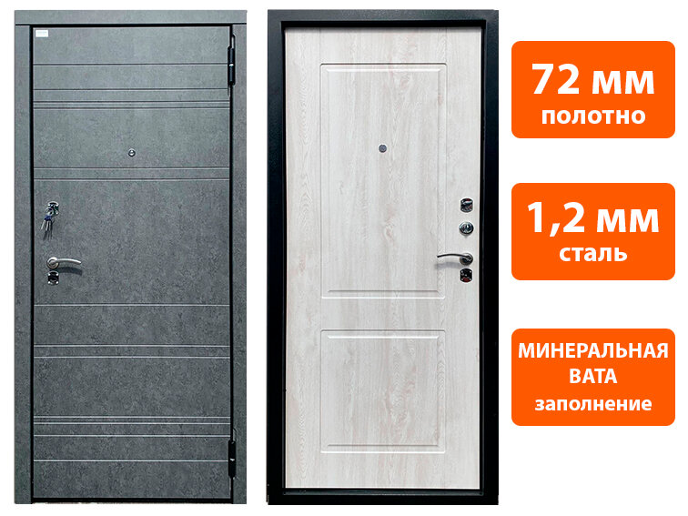 Дверь входная мегатрон WOOD 2 Бетон графит - Белое дерево 960 Правая