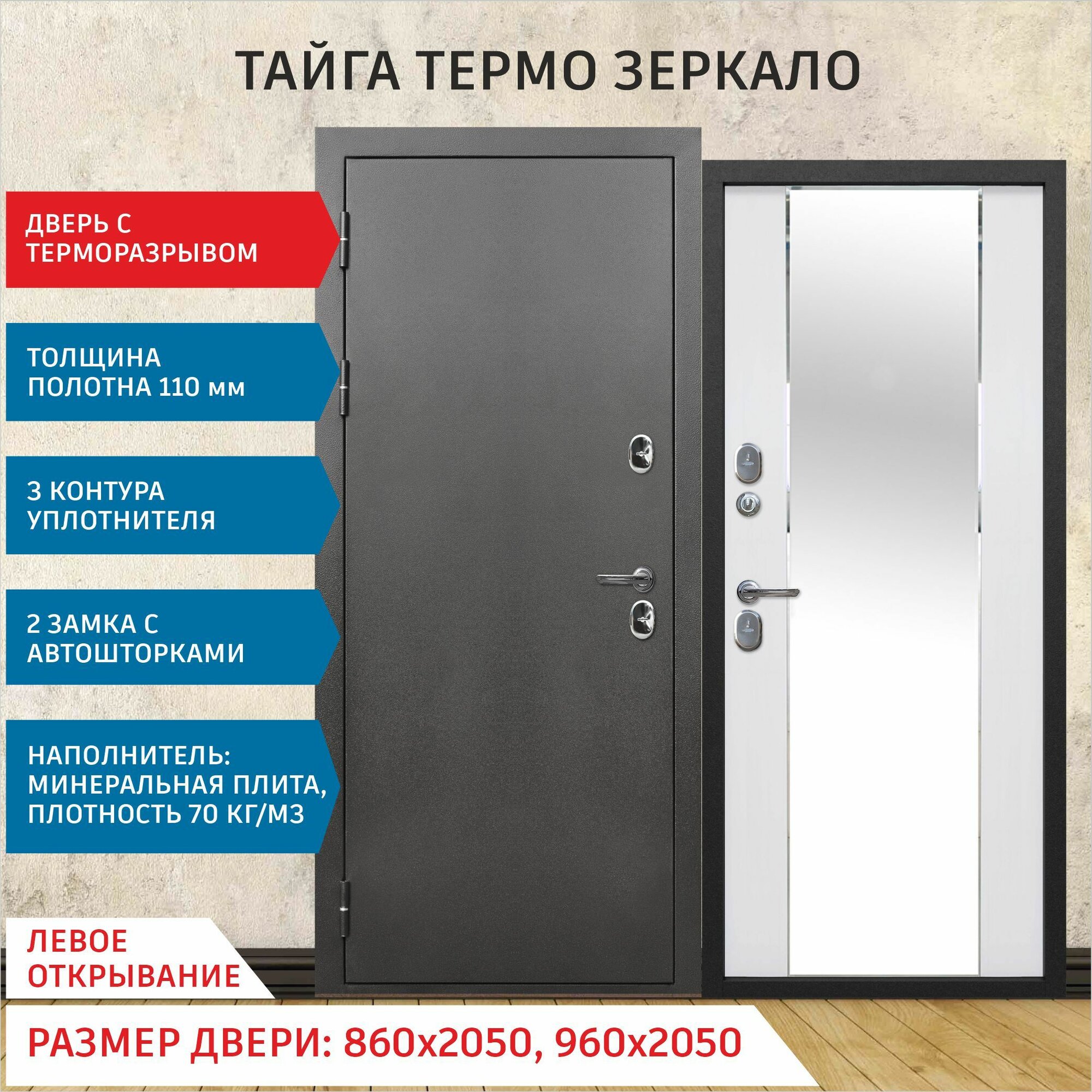 10 цен на Дверь входная c терморазрывом металлическая Тайга Зеркало 2050х960 Левая
