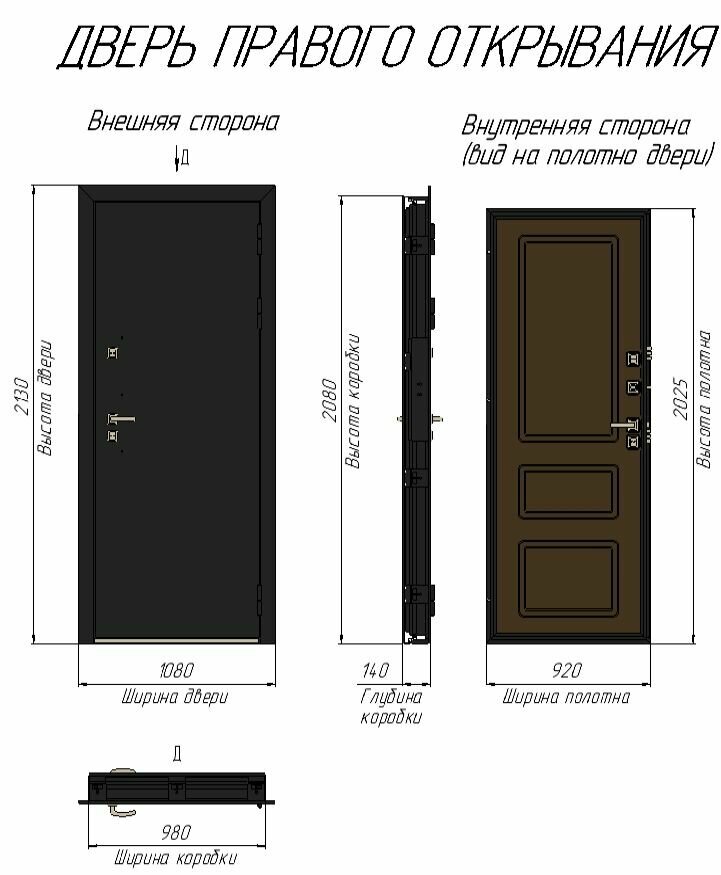 Дверь входная DOORBET "Морозко" терморазрыв 2080*980 правая МДФ10мм Венге Темный информация: