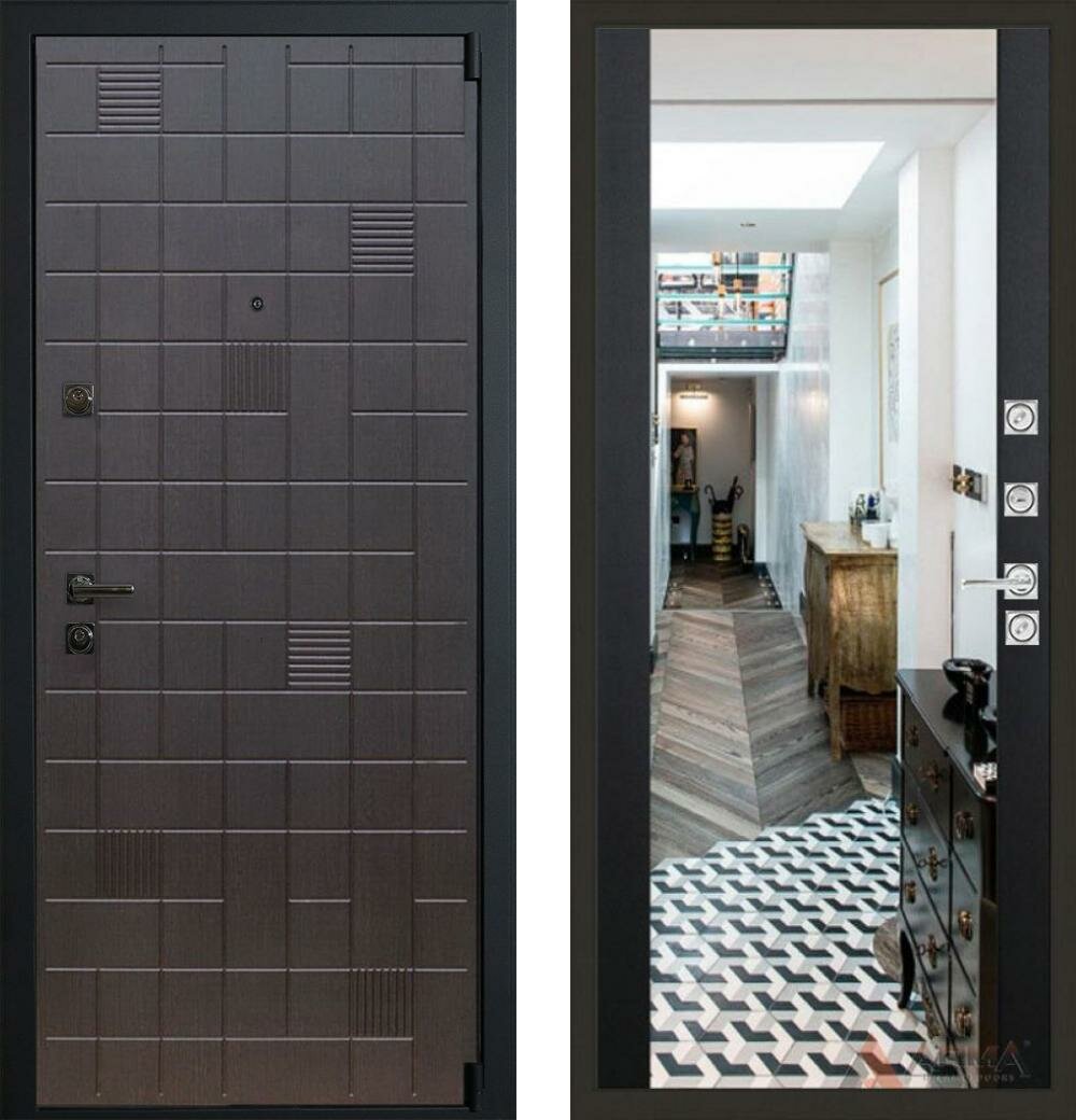 Входная дверь Арма Тетрис 12 с зеркалом "Черный кварц" 960x2050, открывание правое информация: