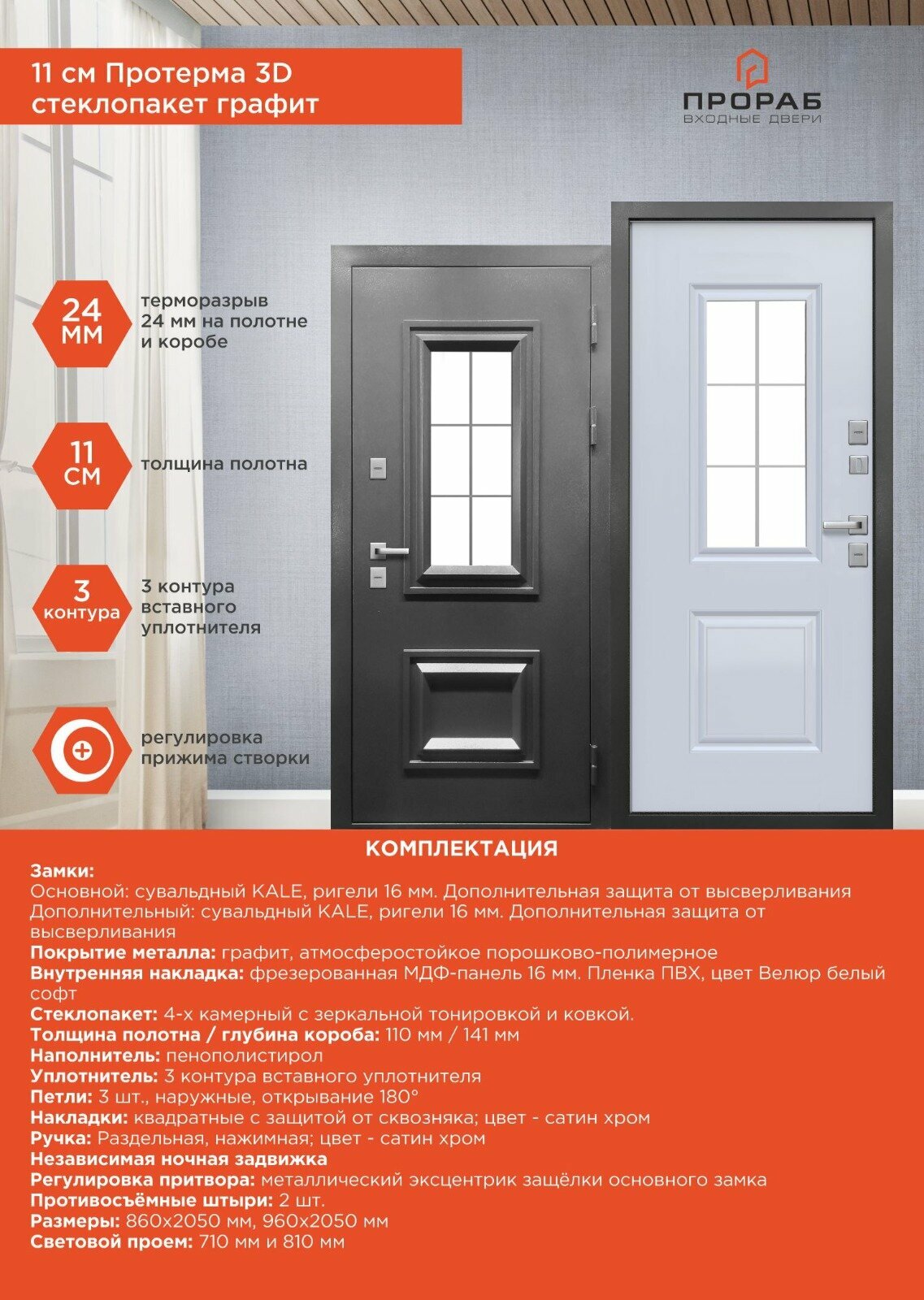 Входная дверь с Терморазрывом 11 см Протерма 3D стеклопакет Графит KALE (860мм) правая информация: